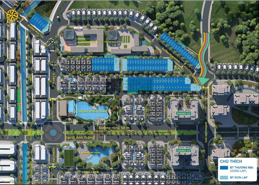 Sở hữu vị trí chiến lược tại trung tâm khu Tây, dễ dàng kết nối Mỹ Đình, Cầu Giấy, Thanh Xuân, Anlac Green Symphony đang là điểm đến được giới thượng lưu lựa chọn để an cư và khẳng định vị thế. Quy tụ cộng đồng thành đạt. Được quy hoạch bài bản trên quỹ đất rộng 75ha, Anlac Green Symphony nằm giữa tâm điểm hành chính kinh tế giáo dục y tế của khu vực phía Tây Hà Nội. Với mật độ xây dựng chỉ 25,1%, không gian xanh hồ nước công viên trải rộng, dự án kiến tạo một môi trường sống trong lành, riêng tư và thư thái, tách biệt khỏi nhịp sống ồn ào phố thị. Nơi đây quy tụ cộng đồng cư dân trí thức, doanh nhân, chuyên gia và gia đình thành đạt những người đề cao chất lượng sống và giá trị bền vững. Kết nối mở lối thịnh vượng. Tọa lạc ngay mặt tiền Vành Đai 3.5 đường 70, liền kề Đại lộ Thăng Long, cư dân chỉ mất vài phút để di chuyển tới Mỹ Đình, trung tâm thành phố và các khu vực trọng điểm. Hệ thống giao thông hoàn thiện giúp Anlac Green Symphony trở thành điểm kết nối của cộng đồng tinh hoa và thịnh vượng. Anlac Green Symphony không chỉ là nơi để ở, mà là nơi khẳng định đẳng cấp sống, gìn giữ giá trị gia đình và truyền lại di sản bền vững cho thế hệ tương lai. Một lựa chọn xứng tầm dành cho những chủ nhân đang tìm kiếm không gian sống đỉnh cao tại phía Tây Hà Nội. Căn diện tích đất 122m² mặt tiền 6m, xây 89m²/tầng, gồm 04 tầng. - Hướng: Đông View hồ và công viên trung tâm (nơi đây tập trung các sự kiện lớn); - Đường: Rộng 30m, vỉa hè rộng, thoáng thoải mái có chỗ để xe ô tô vĩnh viễn, đảm bảo vừa ở vừa kinh doanh hoặc đặt văn phòng, trước mặt là nhà Cluphouse và hồ nước rộng, công viên trung tâm. - Giá bán: 23,5 tỷ đến 30,5 tỷ (tùy vào vị trí): 122m²/căn, mặt tiền 6m, xây 97m²/tầng, gồm 04 tầng nổi.