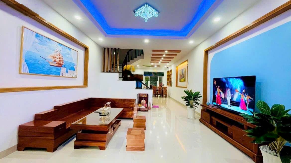 BÁN NHÀ 3,5 TẦNG - KĐT PHƯỚC LONG A, NHA TRANG, ĐẸP KHÔNG TÌ VẾT. - Mặt tiền đường Kha Vạn Cân rộng 12m, thông ra Võ Văn Kiệt, cạnh ngã tư thông ra đường 28. - Diện tích: 90m ngang 5m. DT sàn hoàn công 167m2. DT sử dụng 260m2. Hướng Đông Nam mát mẻ cả ngày. - Kết cấu: Nhà 3 tầng 1 tum, full nội thất gỗ tự nhiên xịn đẹp như hình. - Tầng trệt : sân trước, sân sau, pk và bếp rộng đẹp, wc rộng, full nội thất salon, kệ tivi, bàn ăn, tủ cầu thang, tủ bếp bằng gỗ tự nhiên, tivi, tủ lạnh, máy lọc nước, tranh tường, đèn trang trí... tất cả mới 100%. - Tầng 2 và tầng 3 mỗi tầng 4pn rộng và 4wc khép kín, 4tủ gỗ âm tường, 4 điều hoà, 2 ban công trước, 2 ban công sau. -Tầng tum có phòng thờ, sân thượng trước và sau rộng rãi.-Nhà sạch đẹp, rộng rãi, mới hơn 90%. - Khu dân cư văn minh, xung quanh đầy đủ tiện ích. Cách biển chỉ 1,5km. - Giá bán nhanh trước Tết 9.7 tỷ có thương lượng _ LH : KHOA SDT 0919105757