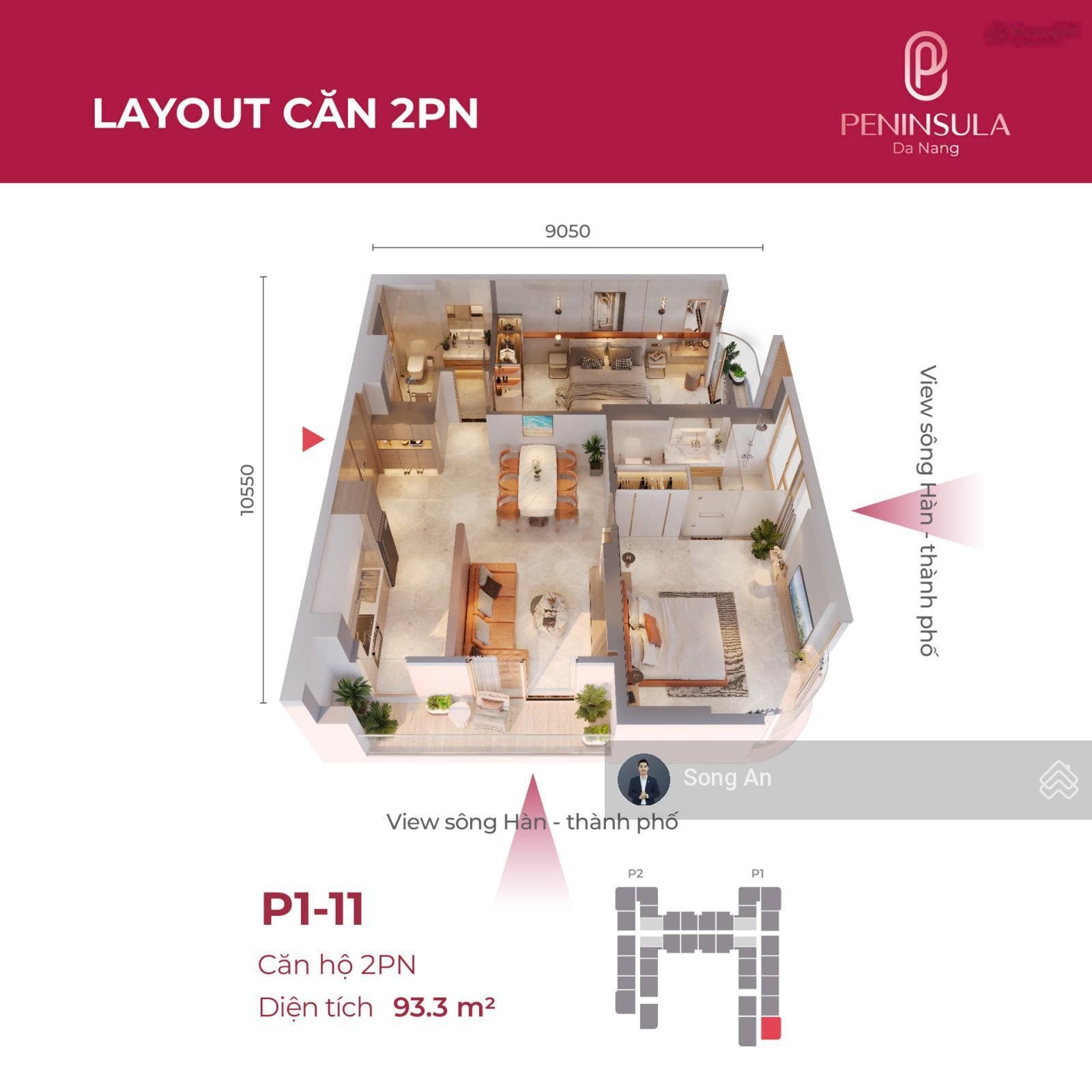 Chính chủ bán căn góc 2PN Peninsula Đà Nẵng view trực diện sông Hàn, tầng thưởng thức pháo hoa diff đẳng cấp. Thông tin chi tiết: * Vị trí: Dự án Peninsula, trung tâm Đà Nẵng, sát sông Hàn, gần biển Mỹ Khê. - Diện tích: 93m2. Thiết kế căn góc, không gian rộng rãi, thoáng mát. - Kết cấu: 2 phòng ngủ, 2WC, phòng khách, bếp, logia lớn. - Ban công Đông Nam + Tây Nam, đón gió và ánh sáng tự nhiên cả ngày. - View trực diện sông Hàn, tận hưởng cảnh quan thành phố lung linh về đêm. - Đặc biệt: Tầm nhìn trực diện lễ hội pháo hoa quốc tế Đà Nẵng (DIFF), không cần chen chúc vẫn có vị trí đẳng cấp nhất để thưởng thức màn trình diễn pháo hoa hàng năm. - Tình trạng: Mới 100%, bàn giao nội thất cao cấp. Tiện ích nổi bật: Hồ bơi vô cực, gym, spa, trung tâm thương mại. Công viên cây xanh, khu vui chơi trẻ em. Bãi đỗ xe rộng rãi, hệ thống an ninh 24/7. Liên hệ chính chủ: 0975906246 Song An. Inbox ngay để nhận thông tin chi tiết.