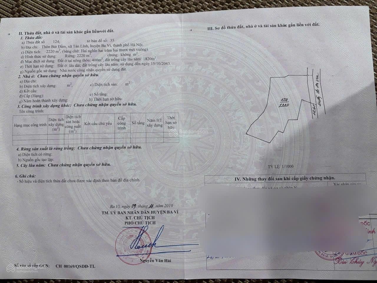 Bán gấp lô đất mặt đường nhựa - gần KDL Ao Vua. - Diện tích 2220m2, có 400m2 đất ở + 1820m2 đất cây lâu năm. - Mặt tiền 30m bám đường nhựa trục chính. - Vị trí cực đẹp, cách cổng khu du lịch Ao Vua chỉ hơn 100m, đầu tư, nghỉ dưỡng, kinh doanh,... Đều hợp lý. - Địa chỉ: Thôn Bát Đầm, Tản Lĩnh (Suối Hai), Ba Vì, Hà Nội. - Giá 12,9 tỷ. Liên hệ (zalo): 0975349726