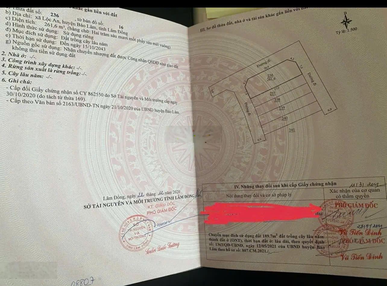 Bán ĐN tại thôn An Hòa, xã Lộc An, Bảo Lâm, Lâm Đồng, 10 triệu/m2, 261.6m2, view đẹp hot
