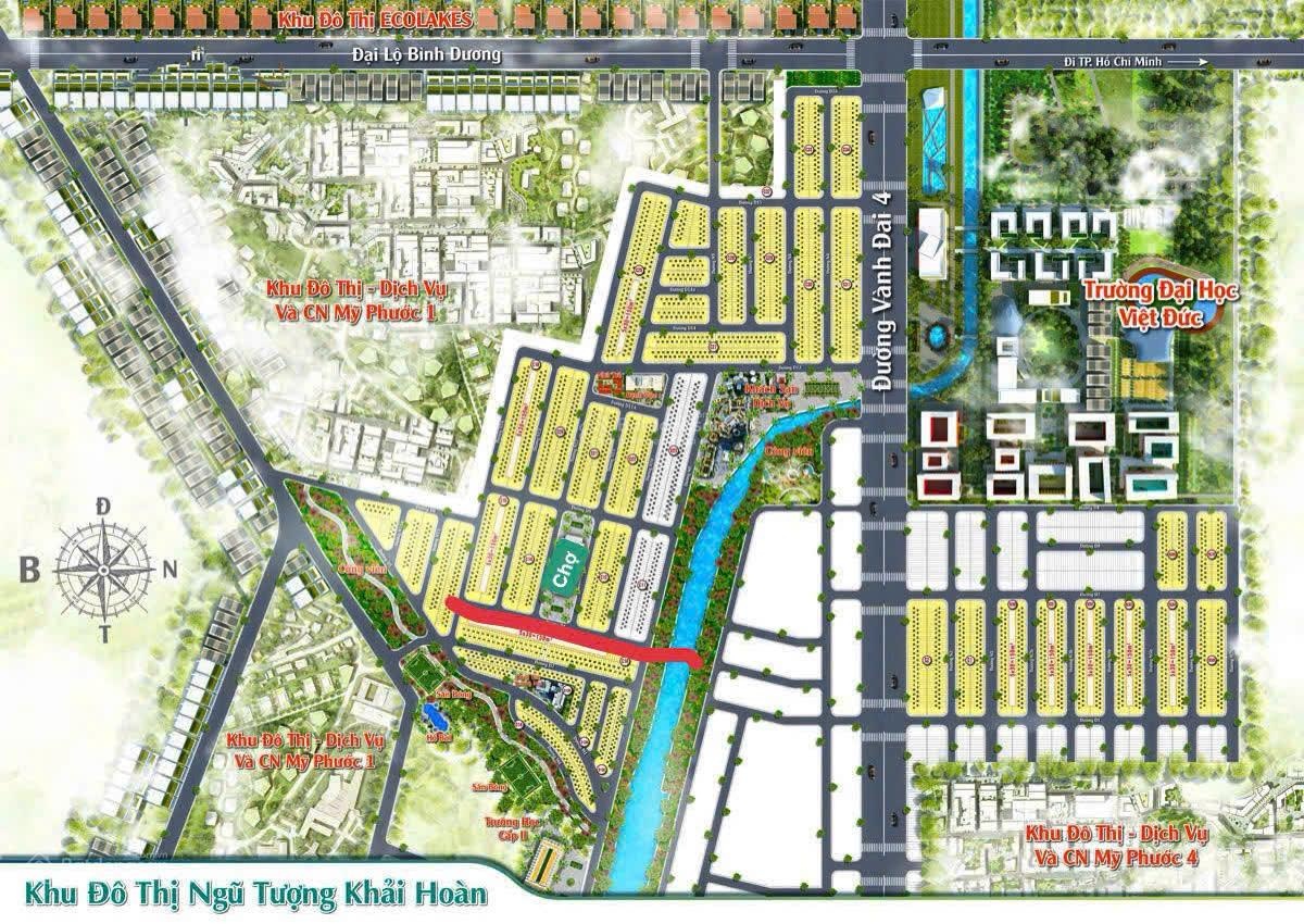 Khu đô thị Ngũ Tượng Khải Hoàn - Khu Đô Thị Ven Sông đẳng cấp tại Bình Dương. Giá F0 CĐT Becamex. Diện tích đa dạng 5x16. 5x20, 5x30 - Đất ở full thổ, sổ đã có hoàn thiện 100%. Sổ hồng riêng công chứng. Ưu điểm nổi bật của dự án. Quy hoạch bài bản đồng bộ, hạ tầng hoàn chỉnh. Không gian sống thoáng đãng, văn minh, phù hợp ở thực lâu dài. Kết nối thuận tiện đến trung tâm Bến Cát và các KCN trọng điểm. Sản phẩm tiềm năng tăng giá tốt, dễ khai thác cho thuê. Giá trị đầu tư bền vững. Trong bối cảnh quỹ đất đô thị tại Bến Cát ngày càng khan hiếm, những khu đô thị được quy hoạch chỉnh chu, vị trí đẹp và pháp lý rõ ràng như Ngũ Tượng Khải Hoàn luôn là lựa chọn ưu tiên của nhà đầu tư an toàn và người mua ở thực.