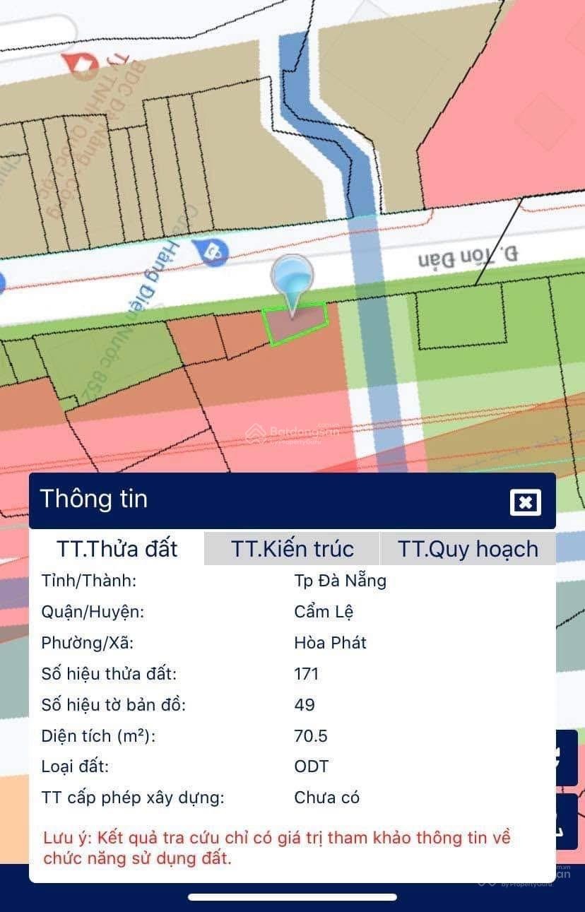 Chính chủ cần tiền gửi bán lô đất mặt tiền kinh doanh đường Tôn Đản,phường Hoà Phát quận Cẩm Lệ giá tốt. - Diện tích: 70,4m2 ngang 12,7m - Hướng Tây Nam,đường 7m5 vỉa hè 4m.Vị trí gần chợ Hoà Phát,thích hợp kinh doanh buôn bán - Giá: 4 tỷ 350 triệu tlcc Liên hệ: 0905662112 để xem đất & làm việc chính chủ