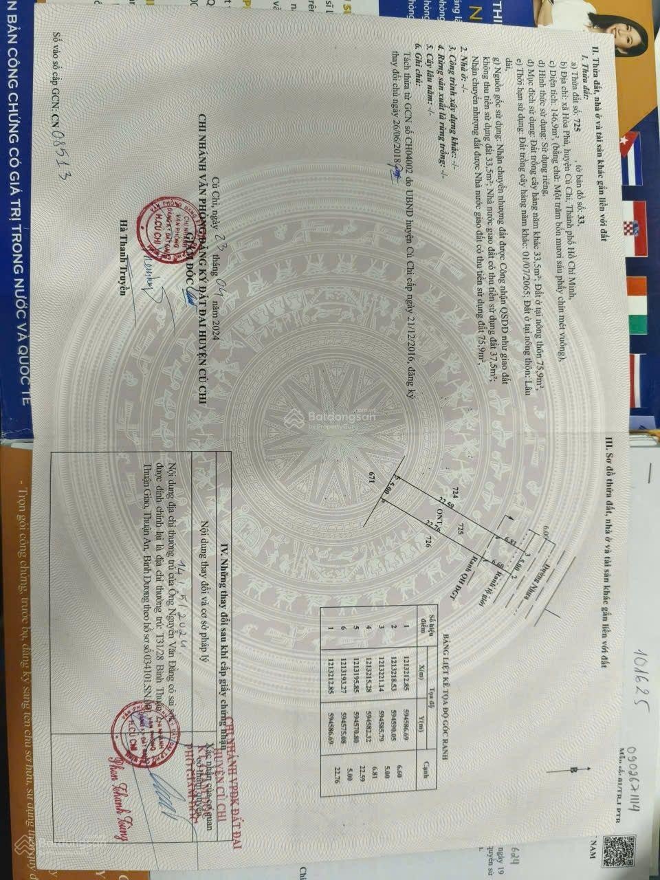 725: cg Đất Mặt Tiền Đường Nhựa Xã Hoà Phú - Củ Chi 1/Bến Than . Ngay cổng sau KCN Đông Nam DT 5 x 30m, full thổ cư Khu dân cư hiện hữu Xây nhà hoàn công.. Giá 2tỷ 3 Lh 037744294