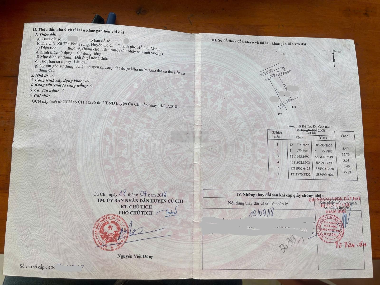 Bán gấp lô đất 87m2 giá 1ty7 đường Cây Da xã Tân Phú Trung, Củ Chi gần trường học - sổ hồng riêng