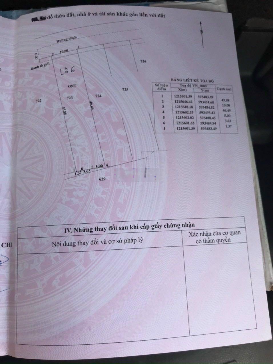 Đất thổ cư (10x46m), Hoà Phú, Củ Chi