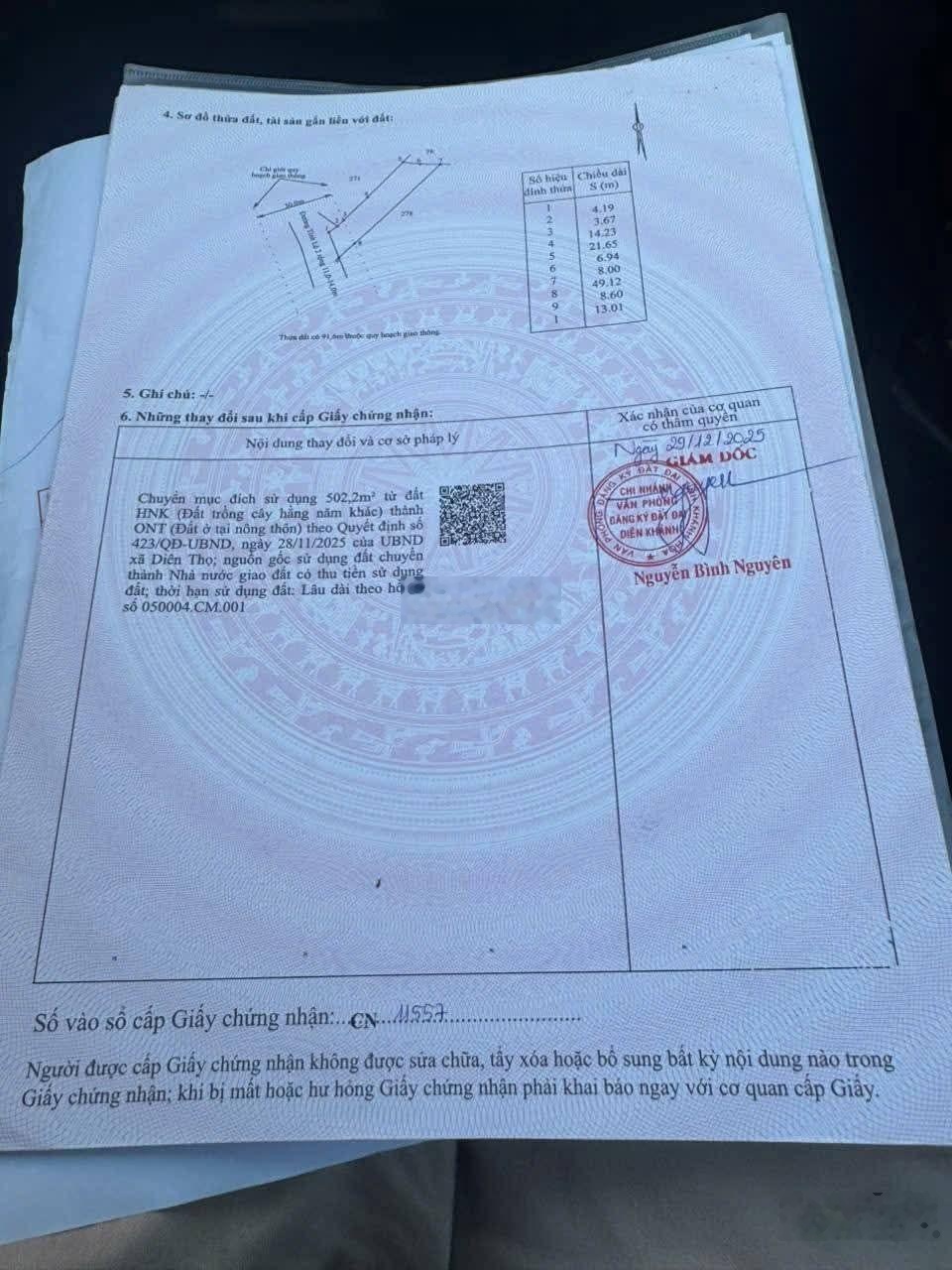 Mình mở bán khu đất mặt tiền tỉnh lộ 2, diên thọ, diên khánh* thổ cư 100%