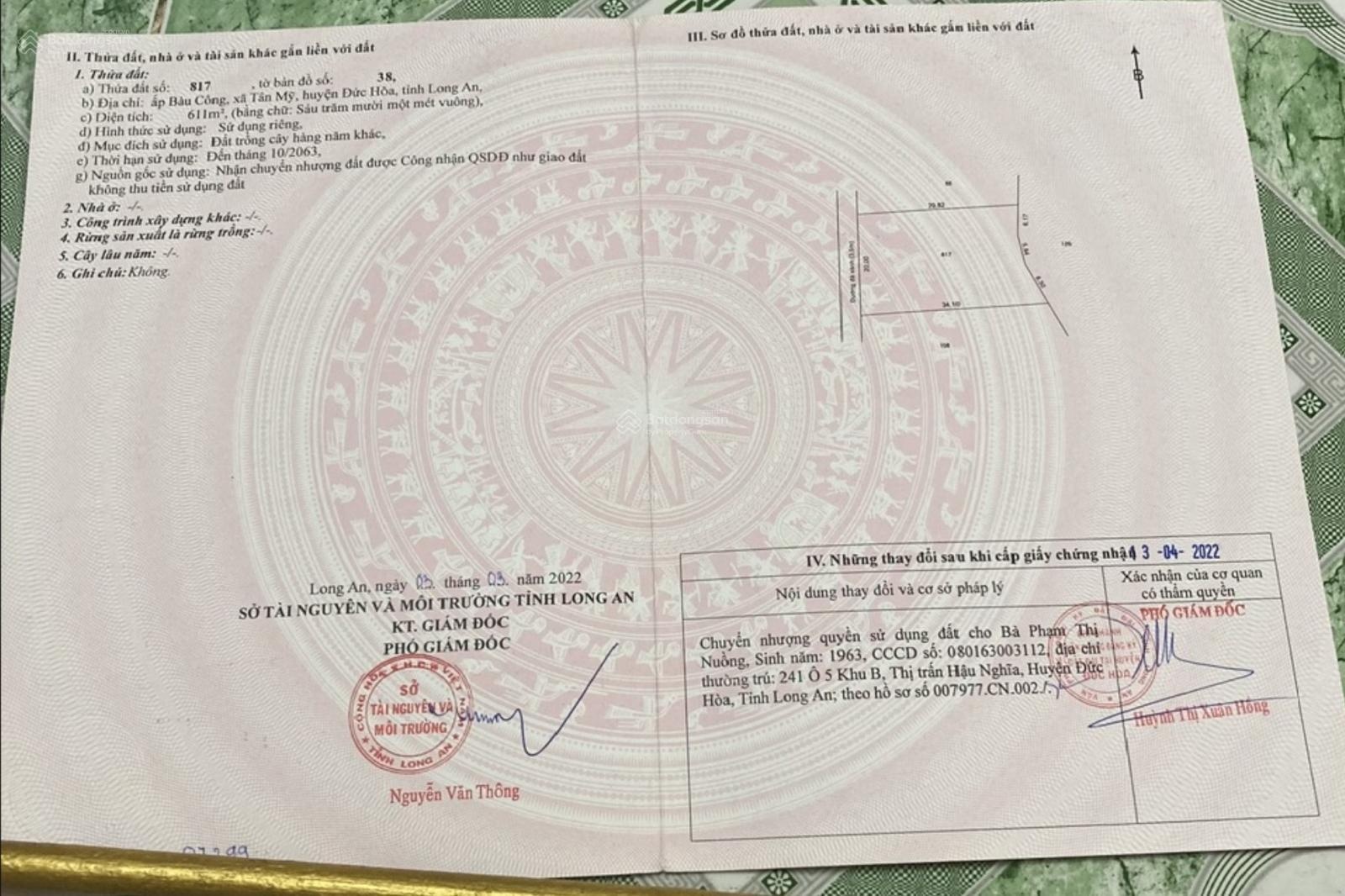 Bán đất tại Đường Bàu Công, Xã Tân Mỹ, Đức Hòa, Long An, giá tốt 5 tỷ, 611 m2