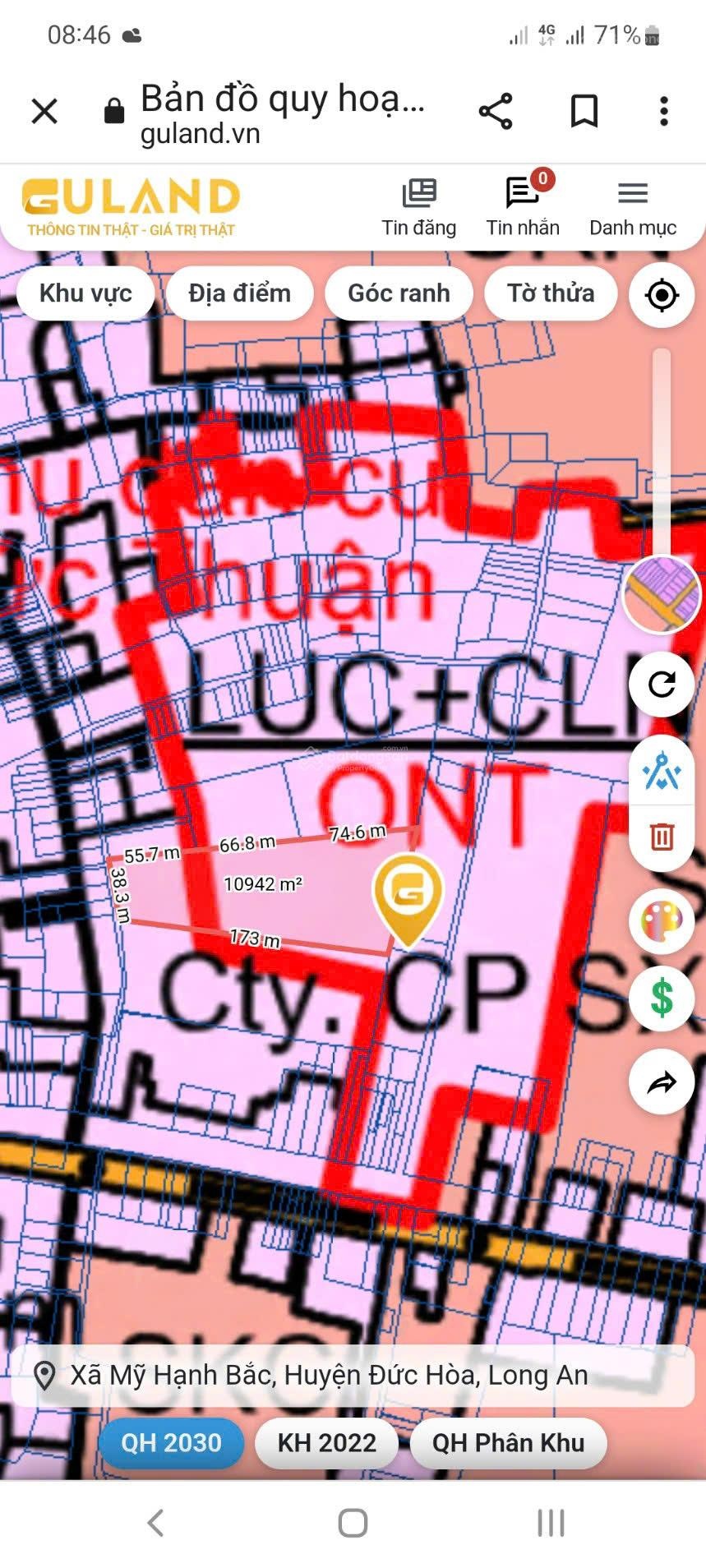 Nhanh tay sở hữu lô đất tại Ngã Ba Mỹ Hạnh, Đức Hòa, Long An với các đặc điểm nổi bật: + Diện tích rộng 10876 m2, lý tưởng cho nhiều mục đích sử dụng. + Giá bán hấp dẫn chỉ 4 triệu / m2, phù hợp với nhiều nhu cầu đầu tư. + Pháp lý đầy đủ, đảm bảo an toàn cho giao dịch. + Khu vực có phong thủy tốt, thuận lợi cho việc xây dựng. Tiện ích xung quanh: + Gần bệnh viện đa khoa Long An Segaero, thuận tiện cho việc chăm sóc sức khỏe. Liên hệ để biết thêm chi tiết về bất động sản này qua số 0985012565 và người liên hệ Nguyễn Văn Hoàng.