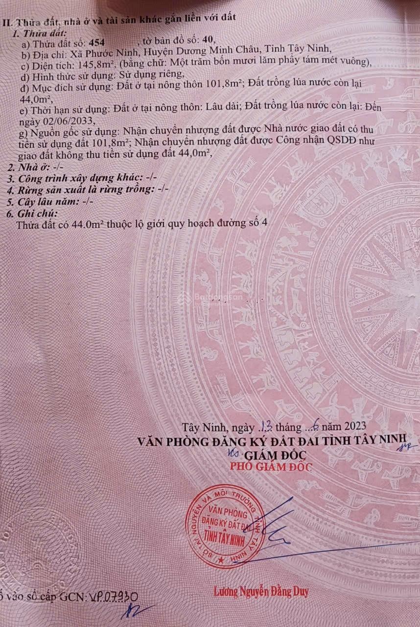 Bán đất ngay Phước Ninh, 360 triệu, 146m2, pháp lý đầy đủ ở Dương Minh Châu, Tây Ninh