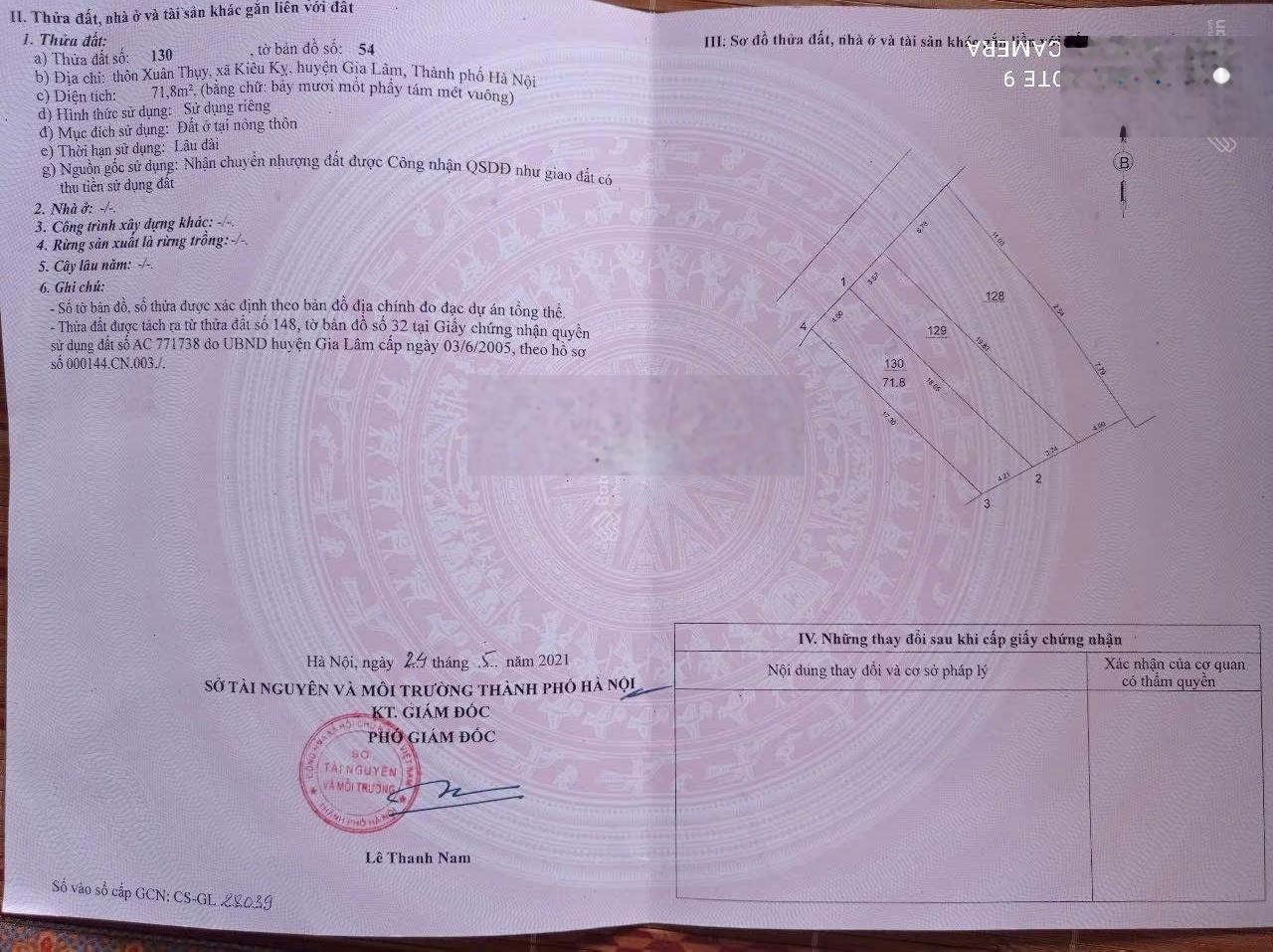 Chính chủ bán 71.8m2 đất SĐCC tại Xuân Thuỵ, Kiêu Kỵ, Gia Lâm HN. - Thửa đất vuông vắn mặt tiền 4m hậu 4.21m, đường thông xe 16 chỗ, sau quy hoạch thành lô góc mặt đường lớn, gần sát dự án Safari của Vinhomes cách Vin1 300m tiềm năng tăng giá lớn, khu dân cư văn minh sầm uất, sổ đỏ cất kết giao dịch trong ngày. - Giá 5.95 tỷ (có thương lượng). - Liên hệ Mr Trung: 0902132489