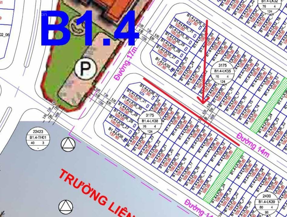 Chính chủ gửi bán lô đất nền dự án chi tiết như sau : _ Vị trí : B1.2 LK 38-x _ Giá 12 tỷ _ Diện Tích : 100m2 , rộng 5m , dài 20m _ Hướng : Đông Nam _ Đường trước mặt 14m , lòng đường 6m , vỉa hè mỗi bên 4m _ Tỷ lệ sàn : 76% _ Lô đất để ở hay kinh doanh cực đẹp, gần trường cấp 1 và 2 liên cấp , xung quanh có tòa chung cư. _ Giao thông đi lại thuận tiện : cách đường chính cienco 5 chưa đầy 200m , cách hồ điều hòa 100m LIÊN HỆ NGAY EM LINH ĐỂ SỞ HỮU : 0815269113