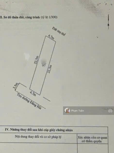 Bán đất tặng nhà xây mới mặt đường Đằng Hải gần chợ Lũng Đông, Trần Hoàn (E57) LH 0917696698 D.tích: 97m2 (ngang 4,7 x 21m) - Hướng: Nam - Bán đất tặng nhà 1,5 tầng xây mới cho thuê dòng tiền ổn định, phía sau có lưu không thoáng mát - Đoạn trung tâm giữa chợ Lũng Đông và trường học Đằng Hải Giá: 82 tr/m2 (có thỏa thuận) (~7,9 tỷ) ============================ + Phạm Tuân 0917696698zalo, face, MDDH97) + Chuyên BĐS các khu Tái định cư - phân lô Lê Hồng Phong, Hải An, Ngô Quyền A/c kết bạn zalo để xem nhiều SP khác hoặc gọi trực tiếp để được tư vấn.