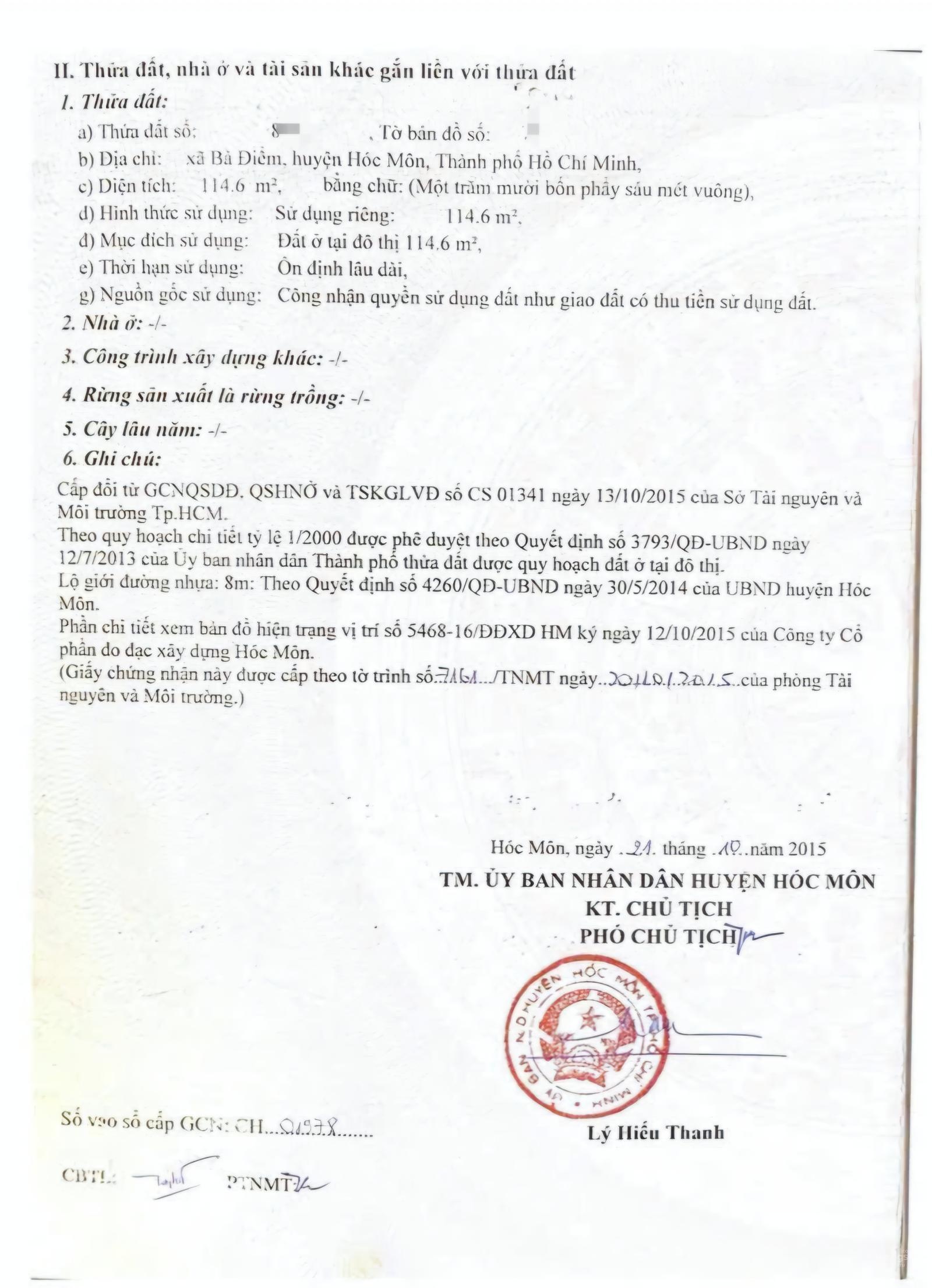 * Lưu ý: Bài viết Bán lô đất thổ cư diện tích 115m2, đường Bà Điểm 4, Hóc Môn, giá 4,6 tỷ - là do người đăng tin đăng tải và chịu trách nhiệm. Meeyland.com không đảm bảo và không chịu trách nhiệm về bất kỳ thông tin, nội dung nào liên quan tới tin rao này. Trường hợp phát hiện nội dung tin đăng không chính xác, Quý vị hãy thông báo và cung cấp thông tin cho Ban quản trị Meeyland.com theo số Hotline 0869092929 để được hỗ trợ nhanh chóng và kịp thời nhất.