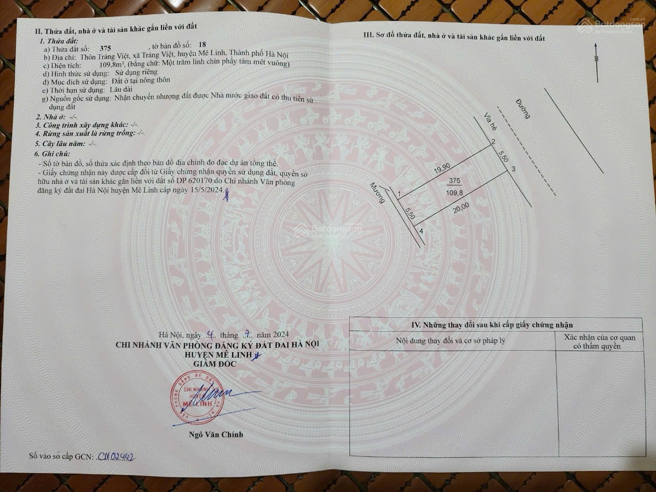 Bán đất ao đấu tráng việt mê linh | 109,8m | mặt tiền 5,5m. giá đầu tư