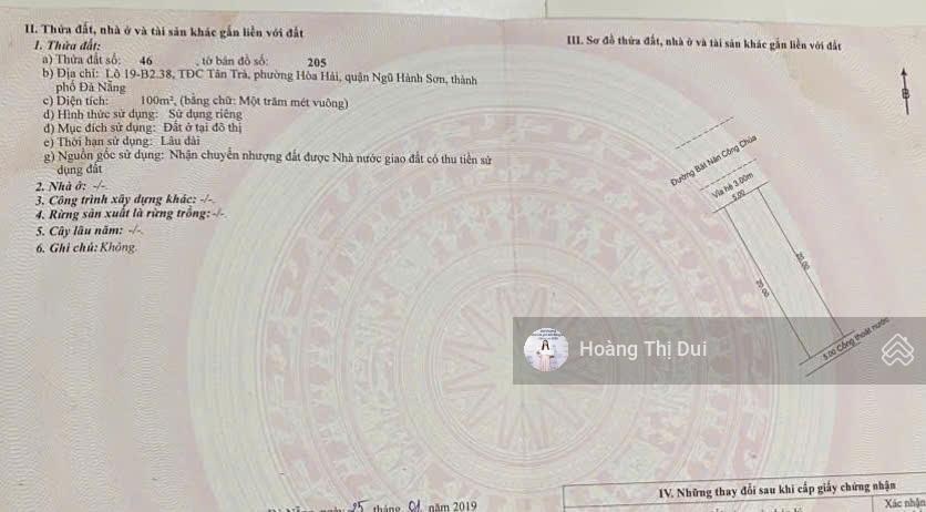 Bán Nhanh Đất Mặt Tiền Bát Nàn Công Chúa TĐC Tân Trà, Hòa Hải 100m² Giá 4,550 Tỷ Vị trí đẹp: Mặt tiền đường Bát Nàn Công Chúa, khu TĐC Tân Trà, phường Hòa Hải, quận Ngũ Hành Sơn, Đà Nẵng. - Gần bãi biển Tân Trà, tuyến đường du lịch ven biển - Liền kề KĐT FPT City, trường học, bệnh viện, chợ dân sinh - Diện tích: 100m² (5 x 20m) - Đường: 5m5 rộng rãi, thông thoáng - Pháp lý: Sổ đỏ chính chủ, sang tên nhanh - Khu dân cư đông đúc, an ninh tốt - Phù hợp xây nhà ở, biệt thự mini, căn hộ cho thuê Giá bán: 4,55 tỷ giá cực tốt trong khu vực Gọi ngay 0905611939 gặp Dui. Chuyên mua bán kí gửi nhà đất quận Ngũ Hành Sơn. Hỗ trợ vay ngân hàng, thừa kế, đáo hạn. Ra hàng nhanh chóng.