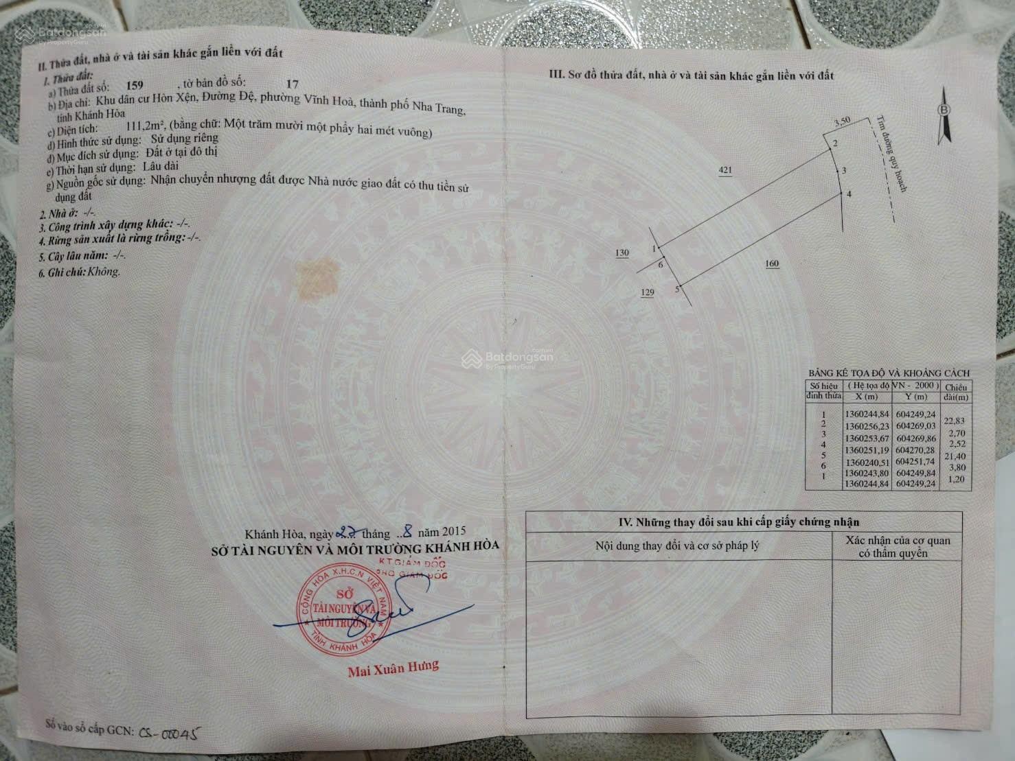Nếu bạn đã từng chậm chân, để người khác mua mất lô đất đẹp Thì đây cơ hội đến để bạn không phải mắc sai lầm lần nữa Lô đất 111,2m² ngang 5m, hướng Đông Bắc, gần biển, full thổ cư, đường rộng 7m. Chỉ 5 tỷ 750 triệu bao thuế phí. Khu vực dư địa tăng trưởng tốt ! Gọi Ngọc 0935663225 KH-25.00347 sở hữu ngay kẻo lỡ!