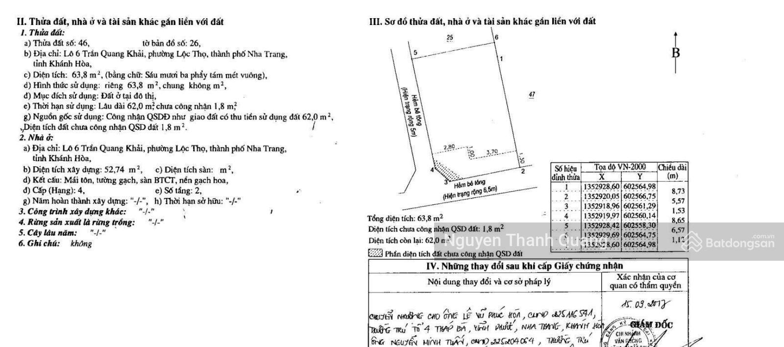 BÁN NHANH LÔ GÓC 2MT ĐƯỜNG Ô TÔ 7M HẺM TRẦN QUANG KHẢI - TẶNG NGAY NHÀ CẤP 4 - CÁCH BIỂN 400M Diện tích : 63.8m2 (mt 5.6 - ôm góc 15.75m, nở hậu 6.5m) Hướng : Nam và Tây Đường rộng: đường trước nhà 6.5 - bên cạnh 5m Tiện ích bán kính km : 500m đầy đủ tiện ích Không thiếu thứ gì, đi tắm biển 400m , vị trí nhiều khách sạn 3-4-5 sao đầy đủ Giá bán: 12 Tỷ Thuế phí: chủ bao thuế phí LH: Thành Quang 091561867 https://maps.app.goo.gl/rvi6Ttef3hebnvC1A?g_st=com.google.maps.preview.copy 249