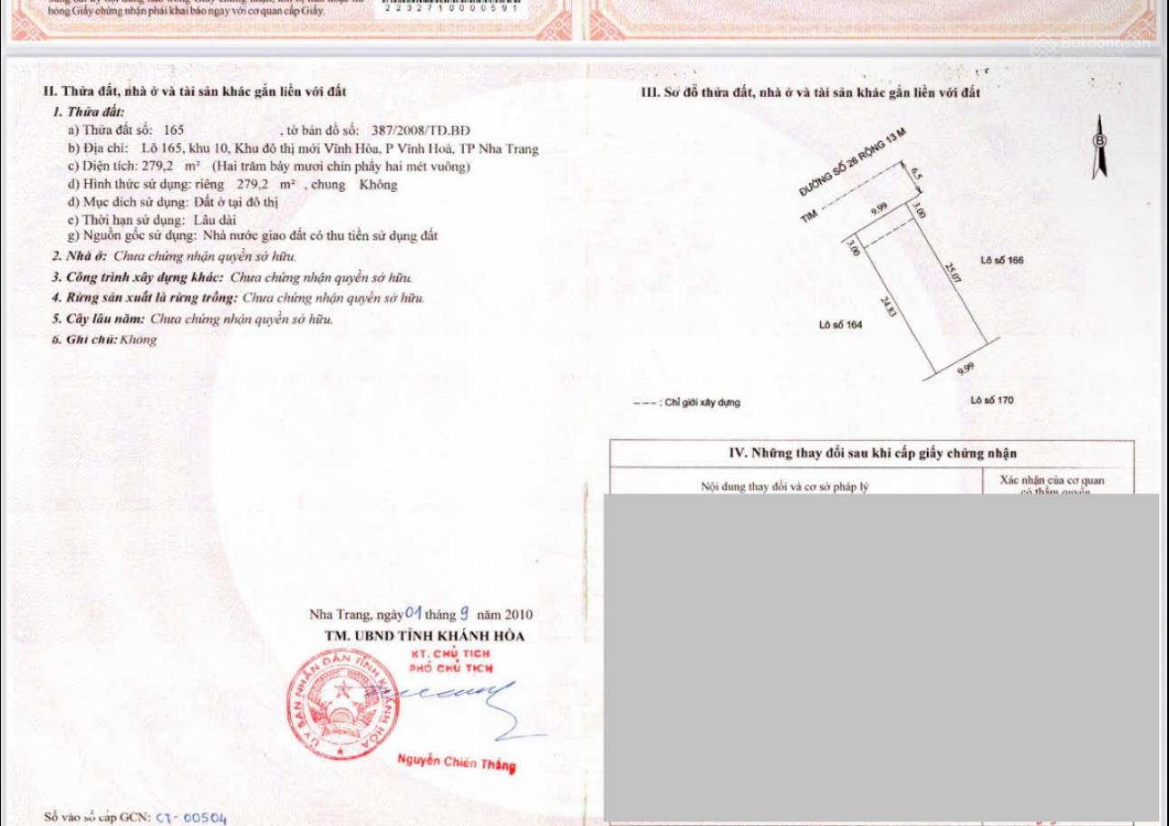 Biệt thự đường Huỳnh Văn Nghệ, KĐT Vĩnh Hoà, P. Bắc Nha Trang - 279,2m2 ngang 10m - giá 51 tr/m2