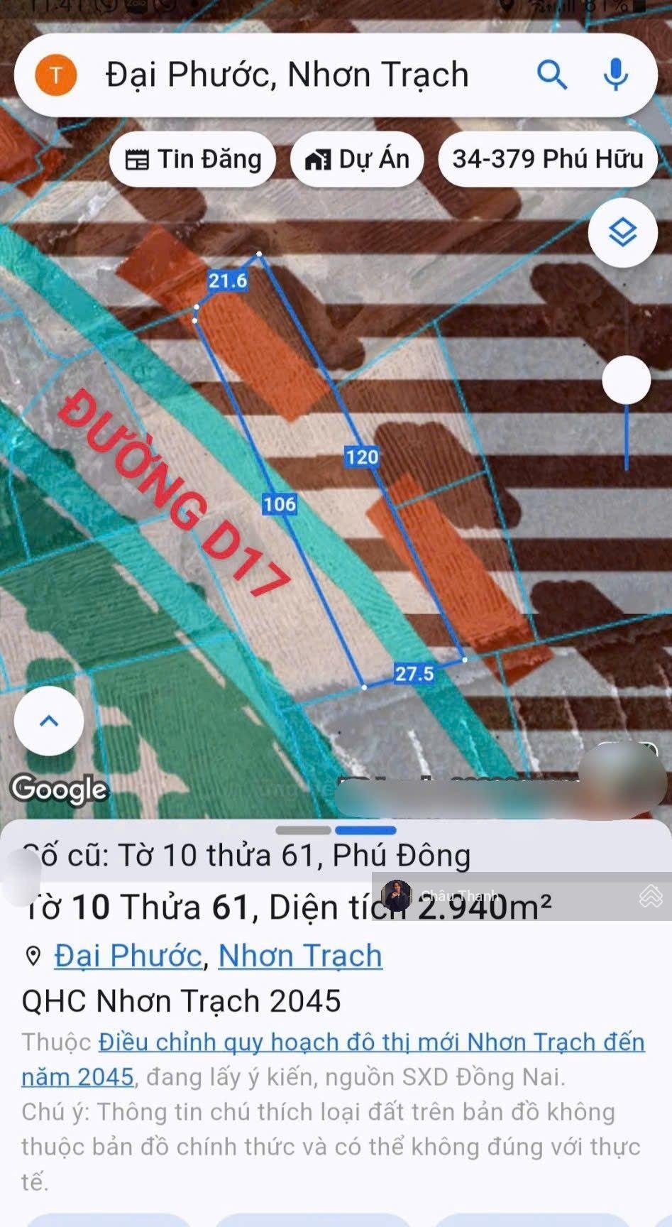 Như tiêu đề, chủ xoay dòng vốn cuối năm, cần chuyển nhượng lại lô đất 3000m2 thuộc xã Phú Đông cũ. * Quy hoạch cấn đường D17 dự phóng (Theo Bản đồ điều chỉnh quy hoạch chung đô thị mới Nhơn Trạch đến năm 2045... ). * Vị trí: Tờ bản đồ số 1, xã Phú Đông, Nhơn Trạch (cách TP. Thủ Đức 3.5km); * Quy hoạch gần tuyến đường cầu Cát Lái (nối Tp. Thủ Đức) vừa làm Lễ động thổ ngày 15/1/2026... Tương lai chỉ mất 10 phút di chuyển về trung tâm TP. Thủ Đức khi hạ tầng kết nối hoàn thiện. * Ngoài ra xung quanh khu đất tập trung nhiều dự án lớn đang triển khai như: Dự án Phú Mỹ Hưng (quy mô 212 hecta, chung chủ đầu tư với dự án PMH quận 7); Dự án Thảo Điền (hơn 60 hecta); Phú Hữu Gia, Sun Group, Văn Phú, An Gia,... ------------------------------------------------ Xin liên hệ: 0356346379 - Mr. Thanh để được hỗ trợ tốt nhất. ------------------------------------------------ * Ngoài ra bên em còn nắm nhiều quỹ đất lớn tại các trục đường chính như: Đường cầu Cát Lái, đường 25C (Nguyễn Ái Quốc), đường Vành Đai 3,... Hiện tại là thời điểm tốt quý anh chị cân nhắc xuống tiền đón sóng đầu tư công khi sân bay Long Thành lẫn hạ tầng giao thông kết nối (TP. HCM - Nhơn Trạch - sân bay) đã và đang hoàn thiện dần. ------------------------------------------------ Xin liên hệ: 0356346379 - Mr. Thanh để được hỗ trợ tốt nhất.