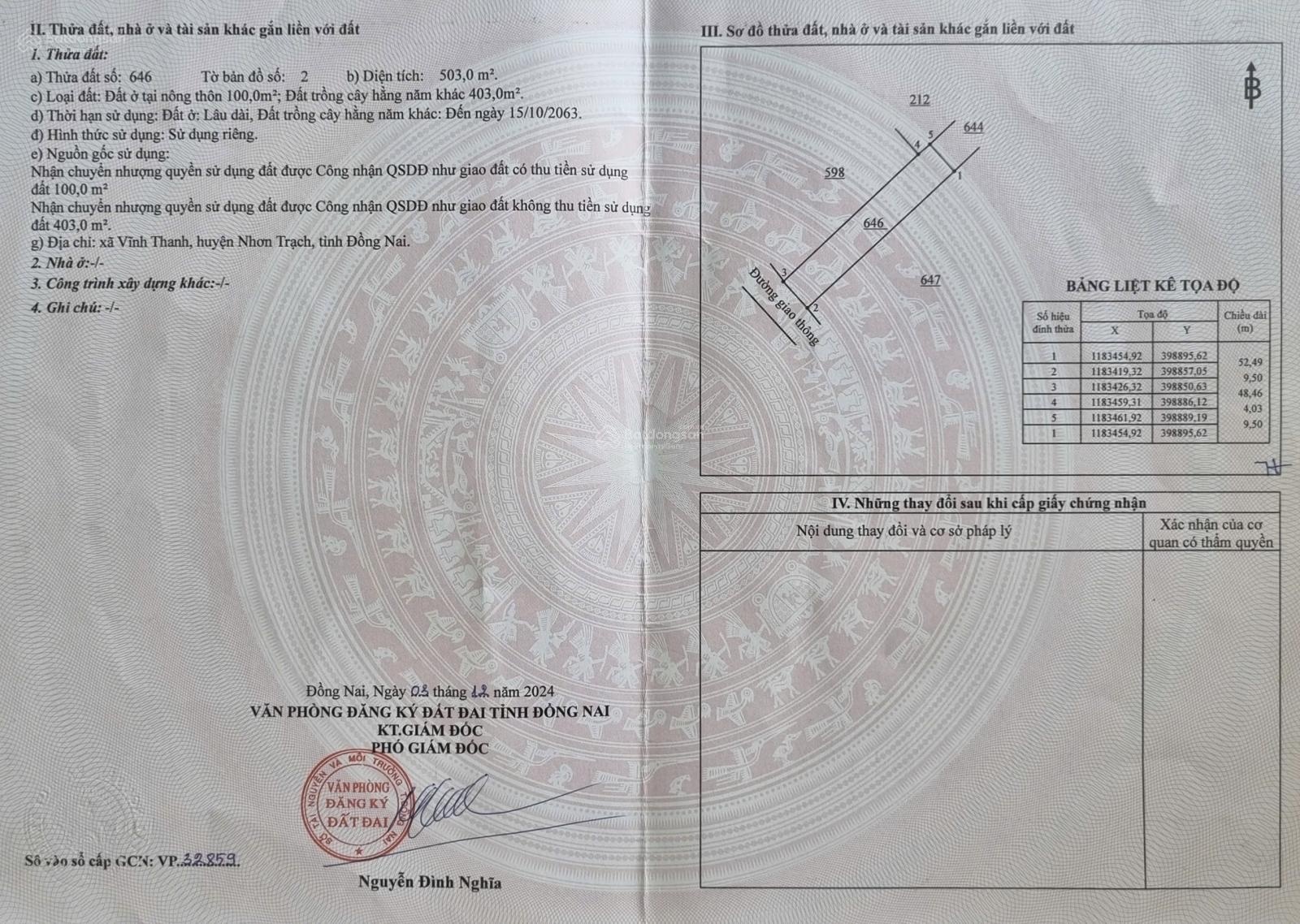 Cần tiền sài tết bán gấp ưu tiên CC giá tốt rẻ bèo. 5tỷ530 duy nhất 1 lô 503m2 - 100m2 thổ / Khu dân Vĩnh Thanh / Xã Phước An, Nhơn Trạch, ĐN. 1/ đường Hoà Bình - đường thông. Vị trí đẹp sát đường VĐ3 - cầu Phú Mỹ. 2. Cách bến phà Cát Lái 9km sang đi TP. HCM. LH: 0938581752