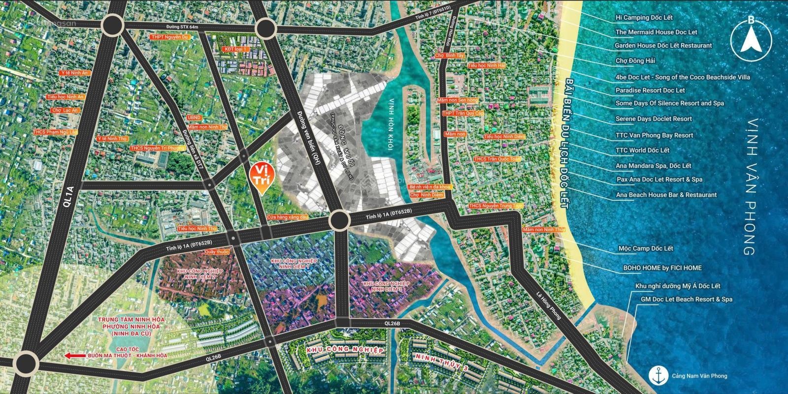 Mở bán 12 lô đất Ninh Thọ Ninh Hoà Khánh Hoà Nay thuộc Đông Ninh Hoà - Khánh Hoà Diện tích: 115-168 m2 Ngang từ 5-6m Giá dao động: 790-990tr Vị trí: Cạnh DT1A - đối diện KCN Ninh Diêm 1 Cách KCN Dốc đá trắng 500m Cách biển 2,5km Cách đường ven biển 300m Liên hệ: 0964962113