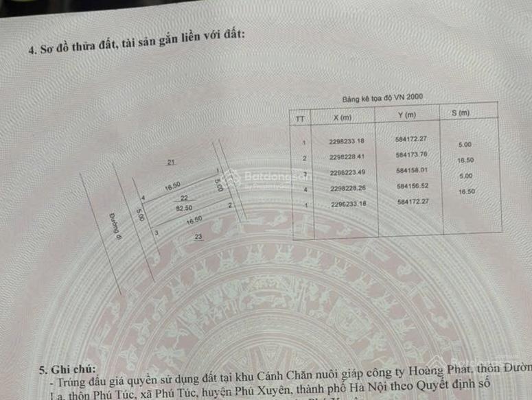 GỬI ĐẾN KHÁCH HÀNG LÔ ĐẤT SIÊU PHẨM VÍP ĐẦU TƯ ĐG ĐƯỜNG LA, PHÚ TÚC. Lô 1: Diện tích 82.5m, mặt tiền rộng 5m, giá hơn 5 tỷ chút xíu. ( chỉ #6xtr/m) Mảnh đất nằm trục chính giá tốt nhất chỉ 5 tỷ. đất đầu tư tốt nhất, sinh lời cao, anh chị em nhanh tay vụt ngay kẻo hết.
