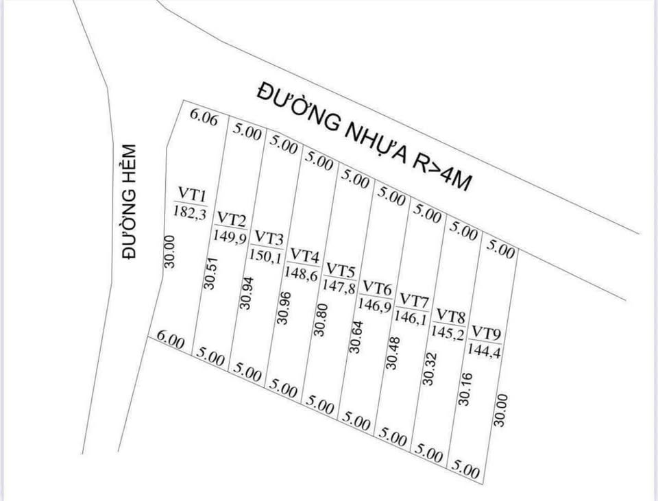 Diện tích mỗi lô là 80m2 (ngang 5m, sâu 30m), đã có sổ đỏ riêng.