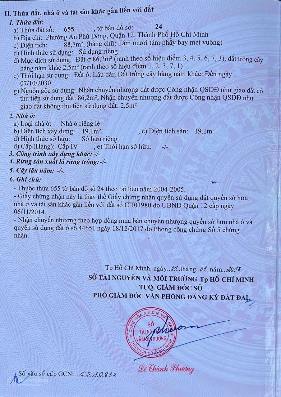 Bán đất đường apd9 , phường An Phú Đông Diện tích thổ cư 86m2 ( ngang 4,7 nở hậu 5,4m dài 17m )