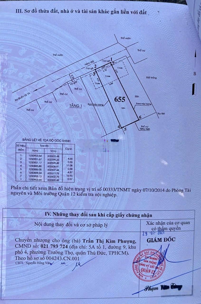 Bán đất đường apd9 , phường An Phú Đông , quận 12 , hcm Diện tích : 88.7m2 thổ cư 86m2 ( ngang 4,7 nở hậu 5,4m dài 17m ) Sổ riêng , pháp lí chuẩn chỉnh Giá : 4.6 tỷ Đường 4m Liên hệ: 0901384743 e Hoa chủ gửi