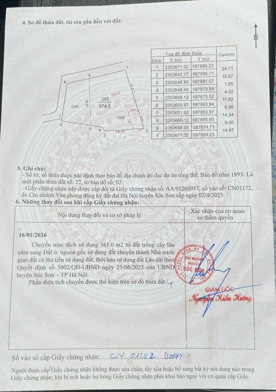 Nằm ở vị trí đắc địa gần đường lớn lên Đền gióng, gần đường lớn Nội Bài - Đền Gióng chuẩn bị làm, gần UBND Xã Phù Linh cũ, Sóc Sơn, Hà Nội. Lô đất có tổng diện tích 574.5 m² có 534m² thổ cư được chia thành 5 lô. Giá bán 1 lô như sau: Lô 3 Diện tích 119,8 m2 Giá bao sang tên 3,78 tỷ. Phù hợp cho những ai đang tìm kiếm một không gian lý tưởng để xây dựng tổ ấm hoặc đầu tư chờ đường lớn làm xong. - Điểm đặc biệt: + Ngõ vào rộng 5m, thuận lợi cho việc đi lại và vận chuyển hàng hóa. + Pháp lý đầy đủ, đảm bảo an tâm cho người mua. + Khu vực trung tâm nhưng yên tĩnh, thích hợp cho việc sinh sống và nghỉ dưỡng. - Tiện ích xung quanh: + Gần Winmart + Đa Phúc, thuận tiện cho việc mua sắm hàng ngày. + Nhiều trường học xung quanh như trường THCS Phù Linh, trường THPT Đa Phúc, trường THCS Thị Trấn Sóc Sơn. Vui lòng liên hệ: Hải: 0866882393