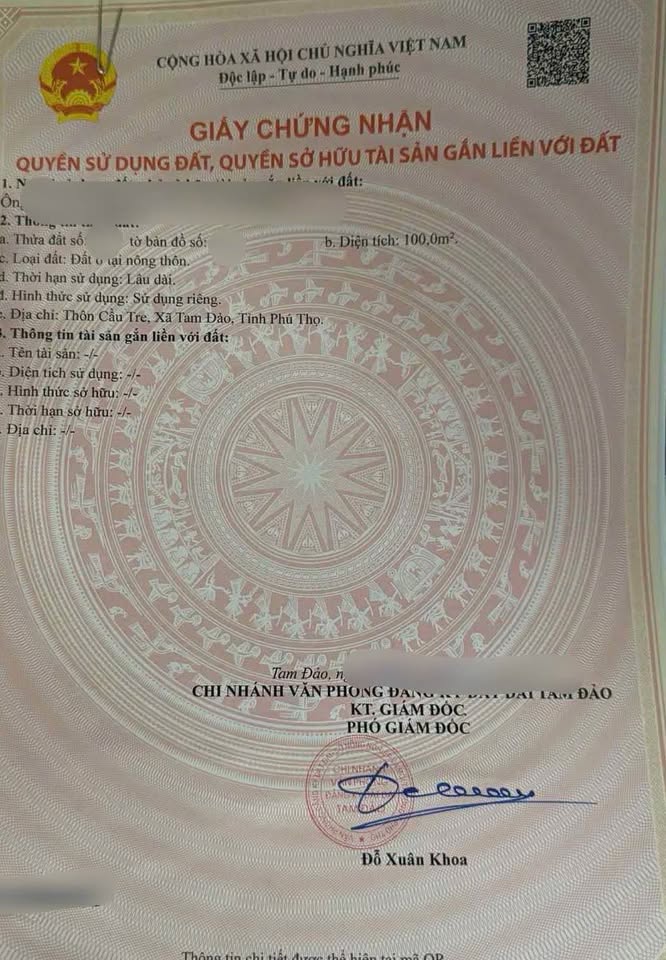 Bán đất đấu giá Cầu Tre, Hồ Sơn, Tam Đảo - 100m², vị trí đẹp