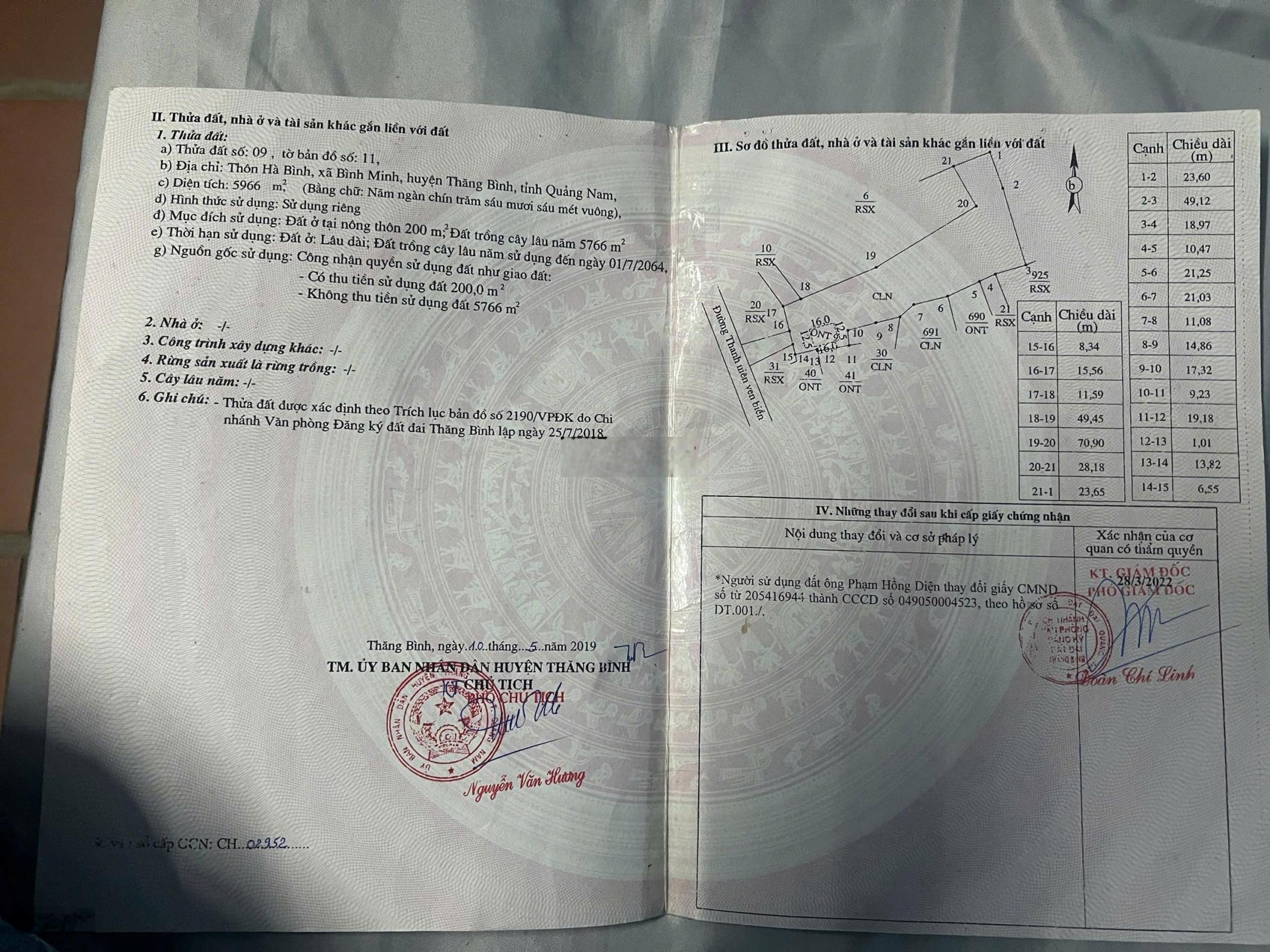 Chính chủ cần bán gấp lô đất biển Bình Minh 6000m2 mặt tiền đường Thanh Niên kế bên khu du lịch Bliss Hoi An. - Diện tích 6000m2, 200m2 thổ cư. - Tiện ích: Tọa lạc ngay mặt tiền đường Thanh Niên 40m(tuyến đường huyết mạch ven biển) cách biển chỉ 100m, gần chợ, trường học, xác vách khu du lịch Bliss Hoi An Beach, cách Vinpearl Land Nam Hội An Chỉ 5 phút đi xe. - Pháp lí sổ hồng đầy đủ. - Phù hợp đầu tư làm villa nghỉ dưỡng. - Giá chỉ 35 tỷ, còn thương lượng. - Mọi thông tin chi tiết xin vui lòng liên hệ.