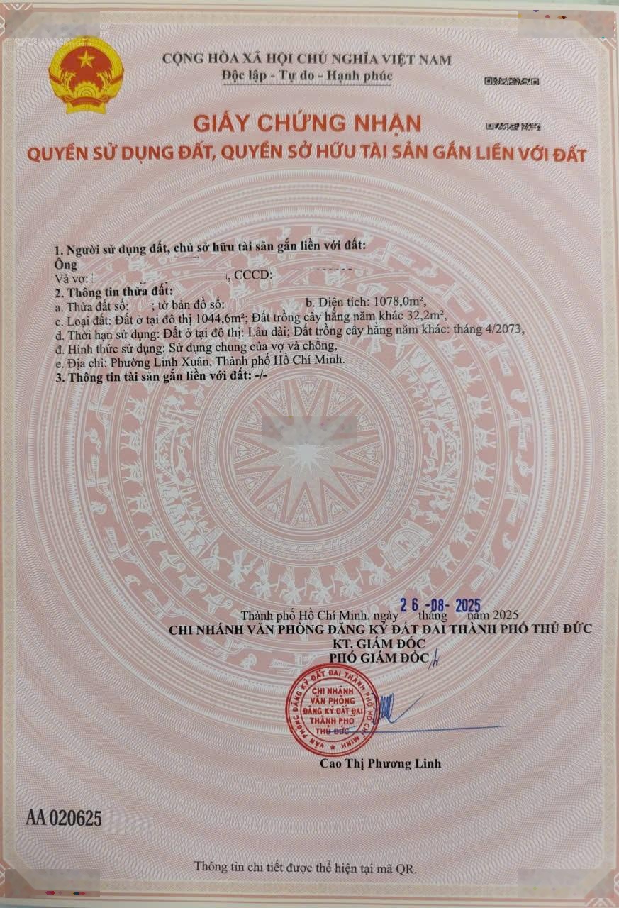 Cần bán đất biệt thự đường số 9, phường Linh Tây. Quận Thủ Đức cũ. TP Hồ Chí Minh. Diện tích = 1078m2 (22m x 47.5m)(1045m2 ODT). Đất ở full thổ cư 100%, đất sạch không vướng quy hoạch, đất vuông vức. Pháp lý đất sổ hồng đường trước đất rộng 12 mét Ô tô tải vào đến nhà, đất hướng đông nam. Đất tiện xây mới mật độ xây dựng nhà cao 7 tầng. Vị trí đất gần chợ Thủ Đức, Trường học, bệnh viện đa khoa Thủ Đức, cách đường Phạm Văn Đồng 100 mét, kế Trường Đại Học Cảnh Sát cơ sở 2, cách đường Kha Vạn Cân 500 mét xung quanh có rất nhiều dịch vụ tiện ích, giao thông nhộn nhịp. Hiện trạng bán 1 lô hoặc 2 lô liền nhau. Tổng diện tích 2 lô = 2.156m2 (45m x 47.5m). Giá bán: 50 tr/m2. Tel. 0918481296 gặp Minh.