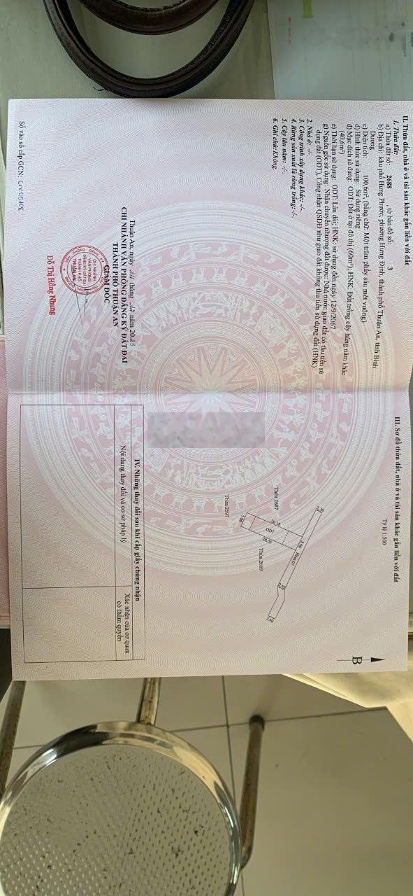 Bán Đất Hưng Định Thuận An Bình Dương. ( này là phường Thuận An Tp HCM) Vị trí đẹp: Gần trường học, chợ Chòm Sao, khu dân cư hiện hữu, hàng xóm thân thiện. kết nối nhanh ra Quốc Lộ 13 KCN Việt Hương. Chỉ 15 phút đến VSIP, Aeon Mall, Sân Golf Đường thông thoáng đi lại thuận tiện Diện tích: 100 m² Thổ cư: 60m² xây dựng tự do Đất bằng phẳng, ranh mốc rỏ ràng.