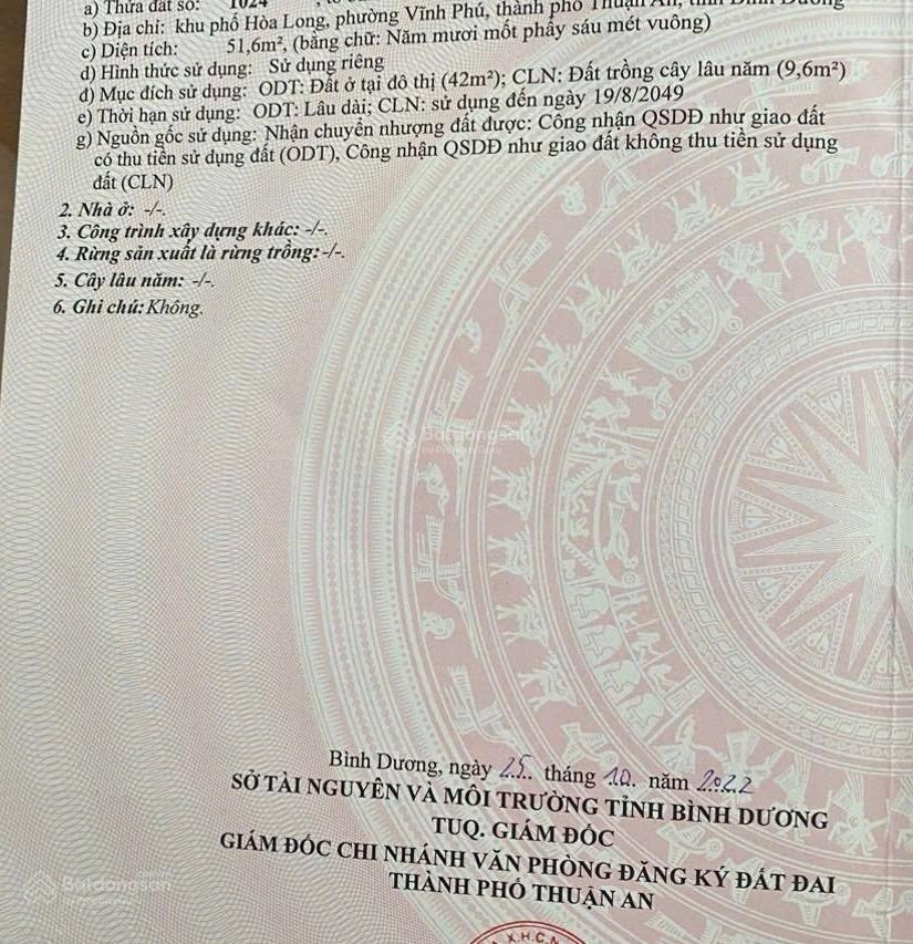 Cần bán đất Vĩnh Phú 38A ngay cầu Phú Long DT 52m² full thổ cư | đường nhựa 6m. Mặt tiền Vĩnh Phú 38A, sát cầu Phú Long. Đi trung tâm Sài Gòn chỉ 20 phút. Khu dân cư hiện hữu, nhà dân ở kín. Diện tích: 52m2 (6 x 9m). Full thổ cư 100%. Đất không quy hoạch không tranh chấp. Xây dựng tự do, đường nhựa 6m, xe hơi vào tận nơi. Giá bán: 3,1 tỷ thương lượng chính chủ. Liên hệ: 0937526613 Tuấn. Dẫn xem đất 24/7 Xin cảm ơn!