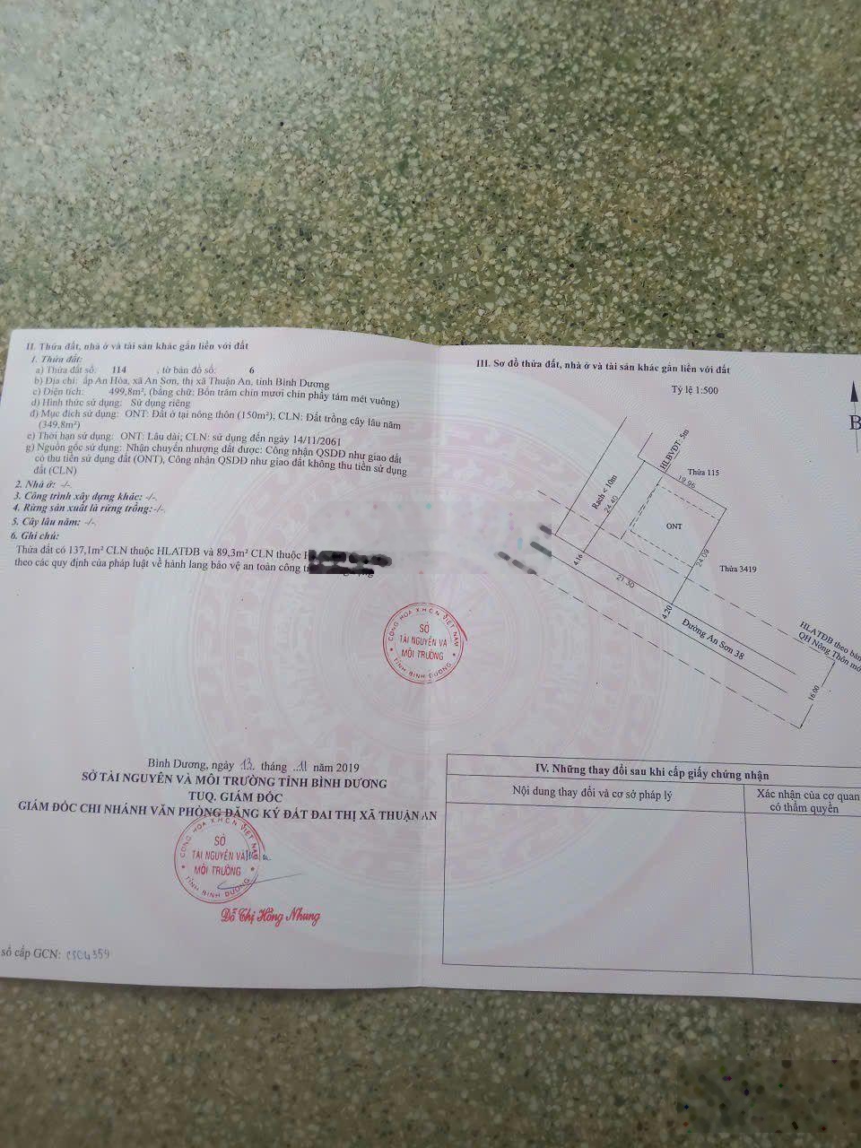 Bán 499.8m2 mặt tiền An Sơn 38, An Sơn, Thuận An, Bình Dương gần chợ gần trường học 0961410279