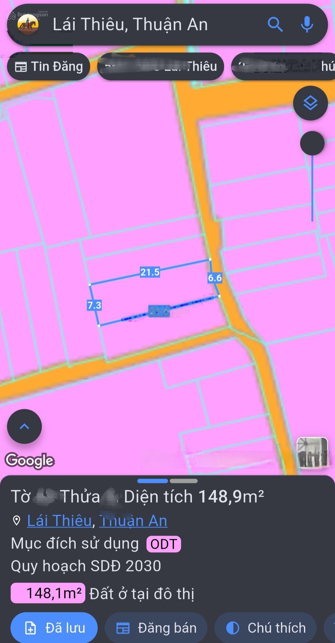 +Vị Trí: Gần bờ bao sông Sài Gòn, trung tâm Lái Thiêu +Cách Lotte Mart & Chợ Lái Thiêu ~400m Diện Tích: 149m, 100% thổ cư, đất nở hậu đẹp +Hạ Tầng Tiện Ích: Đường ô tô thông thoáng +Khu dân cư hiện hữu, hạ tầng hoàn chỉnh Xây dựng tự do +Không gian ven sông mát mẻ, thoáng đãng + Pháp Lý: Sổ hồng riêng, công chứng sang tên ngay 3 Lý Do Nên Chốt: -Phong thủy đại cát: Đất ven sông, nở hậu hiếm, tốt an cư & giữ tài sản -Tiện ích đầy đủ: Bán kính vài trăm mét có chợ, siêu thị, trường học -Tiềm năng tăng giá: Quỹ đất ven sông Lái Thiêu ngày càng khan hiếm Liên hệ: Mr. Hồng 0919875869 Xem đất thực tế, làm việc chính chủ Chuyên BĐS Thuận An TDM Dĩ An