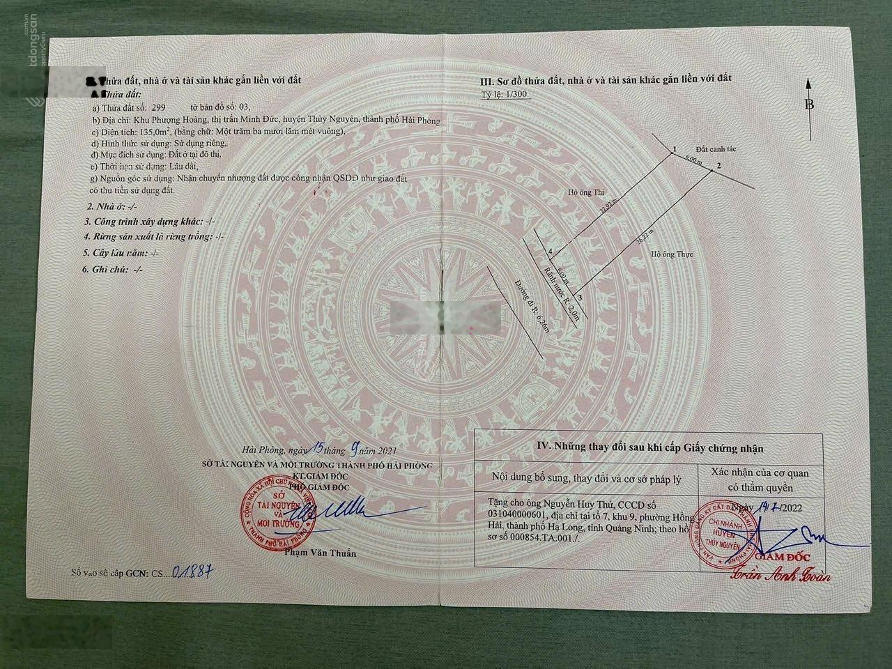Đất nền 2 mặt tiền cực chất tại công viên Minh Đức, Thủy Nguyên, Hải Phòng. Diện tích rộng 135m2, giá chỉ 2 tỷ VND, phù hợp cho việc xây dựng nhà ở hoặc kinh doanh. - Pháp lý đầy đủ, sổ đỏ sẵn sàng. - Hướng Tây Nam, đón gió mát mẻ. - Mặt tiền rộng 6m, thuận tiện cho việc kinh doanh. - Đường vào rộng 9m, dễ dàng cho ô tô vào. Đây là cơ hội hiếm có cho ai muốn tìm một mảnh đất đẹp, thuận tiện và có giá trị đầu tư cao. Liên hệ ngay để biết thêm thông tin chi tiết qua 0389986277 và A Thắng.