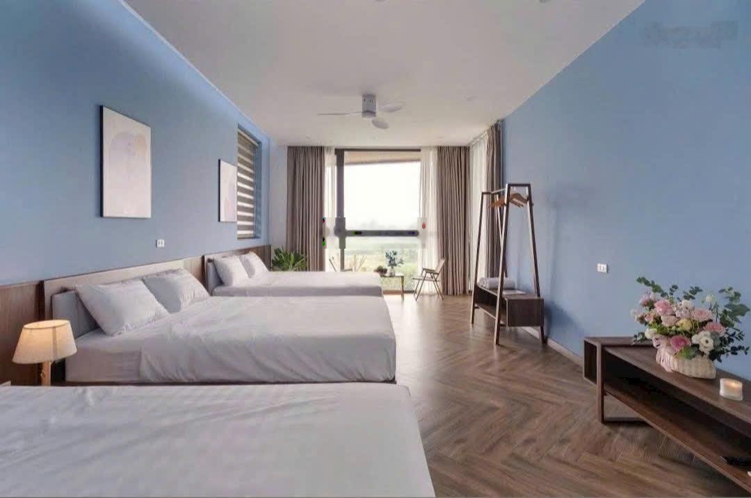 Khuân viên gồm: 7 phòng ngủ có đầy đủ vệ sinh khép kín tiện nghi, một phòng khách rộng rãi, phòng ăn, 2 bể bơi vô cực, khuôn viên sân vườn thoáng mát bám cánh đồng view núi Ba Vì cực đẹp.