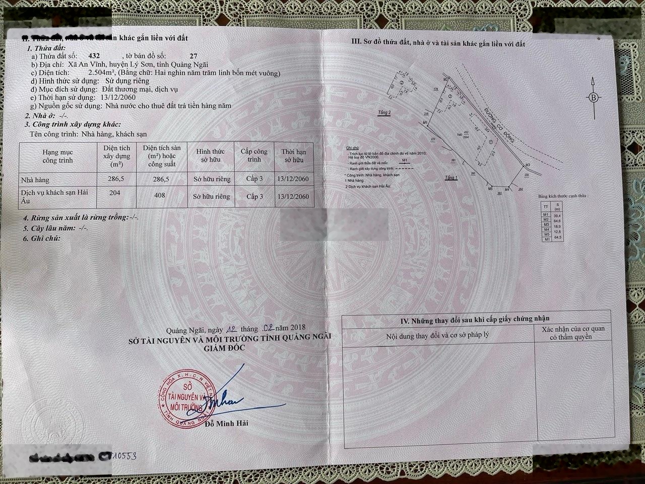 Chính chủ bán khu đất TMDV đang kinh doanh tại đặc khu Lý Sơn, DT 2500m2 giá 60 tỷ TL