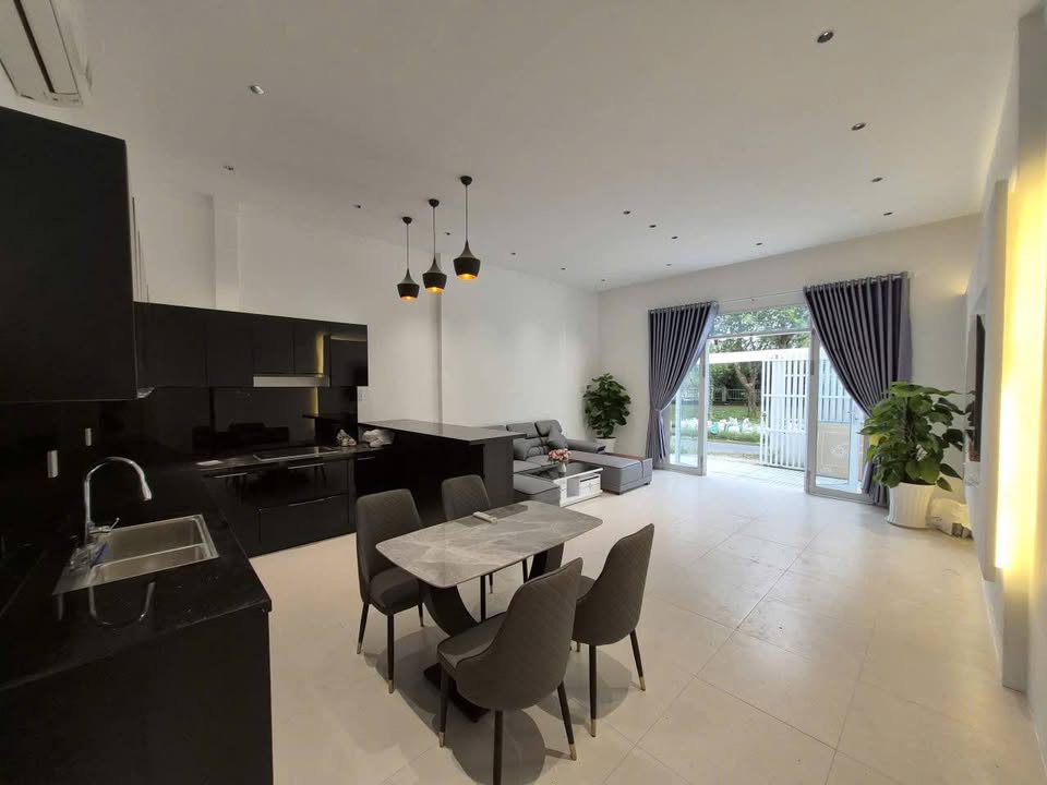 Nội thất được chăm chút tỉ mỉ với dàn bếp xịn xò, 3 máy lạnh, sofa, bàn ăn, màn, 2 giường nệm.