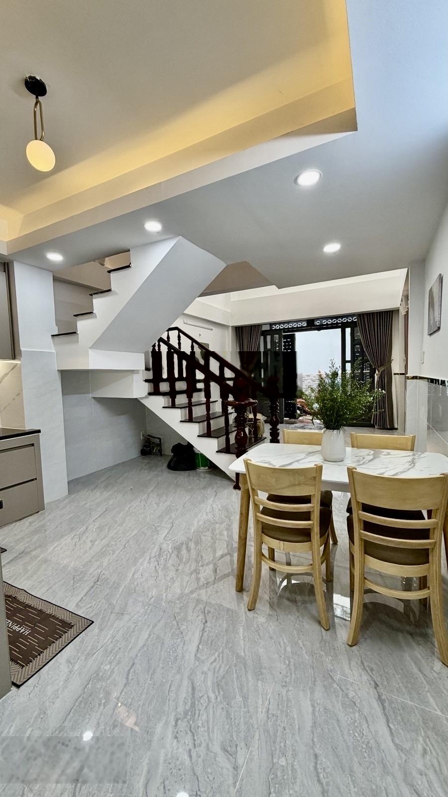 Vị trí đắc địa Nhà đẹp vào ở ngay Pháp lý hoàn chỉnh Diện tích: 44m2 (Ngang 4.2m x Dài 10.5m) Khuôn đất vuông vức. Kết cấu: 1 trệt, 1 lửng, 2 lầu + Sân thượng. Công năng: 4 Phòng ngủ, 2 WC, phòng khách, bếp, sân thượng thoáng mát. Hướng: Bắc (Mát mẻ quanh năm). ĐIỂM NỔI BẬT KHÔNG THỂ BỎ QUA: Thiết kế hiện đại: Nhà xây dựng kiên cố (BTCT), tối ưu hóa diện tích sử dụng, đầy đủ công năng cho gia đình đông người hoặc vợ chồng trẻ mới cưới. Vị trí vàng: Ngay khu vực sầm uất Trương Phước Phan - Lê Văn Quới, tiện ích bao vây: chợ, trường học, siêu thị chỉ trong bán kính vài trăm mét. Pháp lý sạch: Sổ hồng riêng chính chủ, hoàn công đầy đủ, công chứng sang tên trong ngày. Giá chào: 5.5 Tỷ (Thương lượng chính chủ).