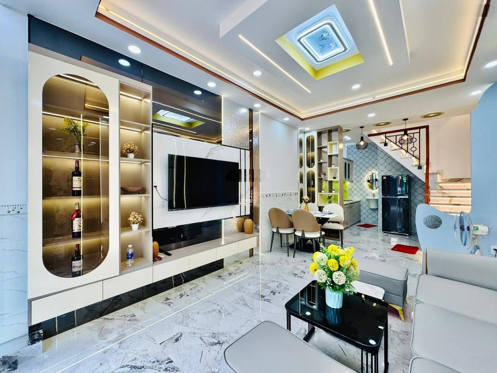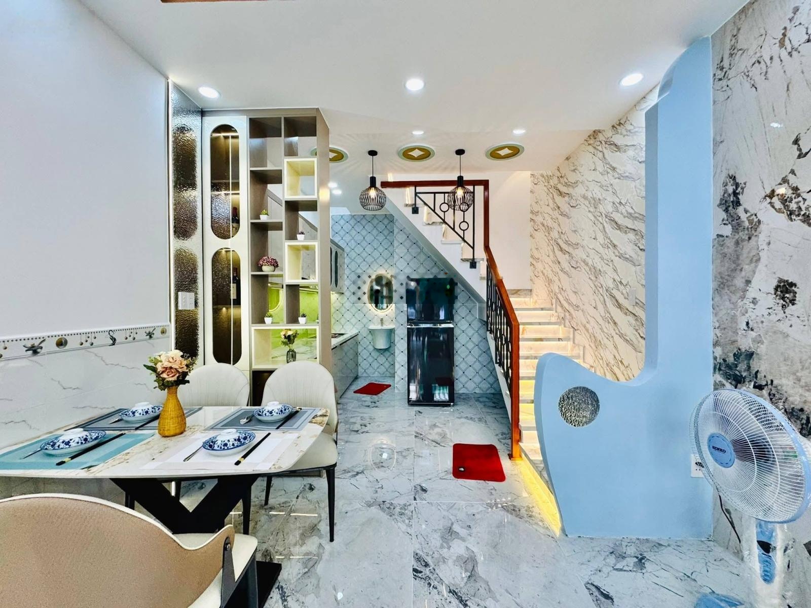 chủ cần bán căn nhà thiết kế sang trọng tặng kém full nội thất, xách vali vào ở ngay diện tích 63m2 thực tế 70m2 ( trừ qh ) ngang hơn 5m, rộng rãi, có cả phòng dưới trệt cho người lớn tuổi ở hẻm 3 gác vi vu, 50m ra hẻm oto, có sân đậu xe máy, hẻm an ninh, hàng xóm thân thiện, kế bên công viên dắt thú cưng đi dạo là tuyệt vời sổ sạch, công chứng trong ngày ngân hàng hổ trợ hết mình, Liên hệ chốt nhà đón tết: Minh Tri