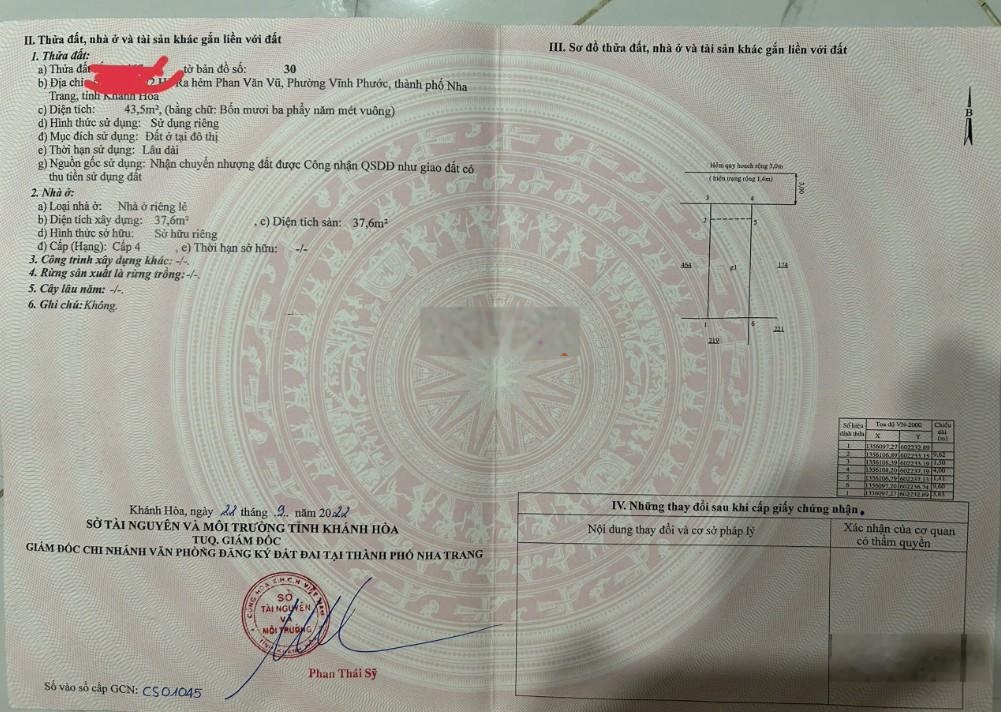HIẾM! Sở hữu ngay nhà đẹp trung tâm TP Nha Trang Giá tốt Vị trí đắc địa ĐIỂM NÓNG ĐẦU TƯ, LỢI NHUẬN VƯỢT TRỘI! - Gần Cầu Hà Ra, hẻm Phan Văn Vũ, cách đường 2/4 chỉ 2 căn nhà. - Khu vực tập trung đông dân cư, sinh viên và khách du lịch. - Hẻm 2 xe máy tránh nhau, quy hoạch mở rộng 3m, không vướng quy hoạch không vô đất. * Diện tích: 43,5m² chiều ngang 4m, vuông vức nhà 2 tầng, hướng bắc - Công năng: 2 phòng ngủ (có phòng ngủ tầng trệt), tầng trên có thể ngăn thêm thành 3 phòng ngủ; 2 WC, phòng khách, bếp, phòng thờ - Full nội thất cao cấp, mới và xịn dọn vào ở ngay * Tiện ích nổi bật: Gần trường đại học Nha Trang. Chỉ vài phút di chuyển ra biển - lý tưởng để ở hoặc khai thác homestay. Kết nối nhanh về trung tâm thành phố và các tuyến đường lớn. * Giá bán: 4,5 tỷ (thương lượng) * Môi trường sống lý tưởng hoặc đầu tư sinh lời lâu dài Liên hệ: Lê 08226 năm không 968 Nhà đẹp vị trí trung tâm pháp lý an tâm phù hợp an cư hoặc đầu tư sinh lời.