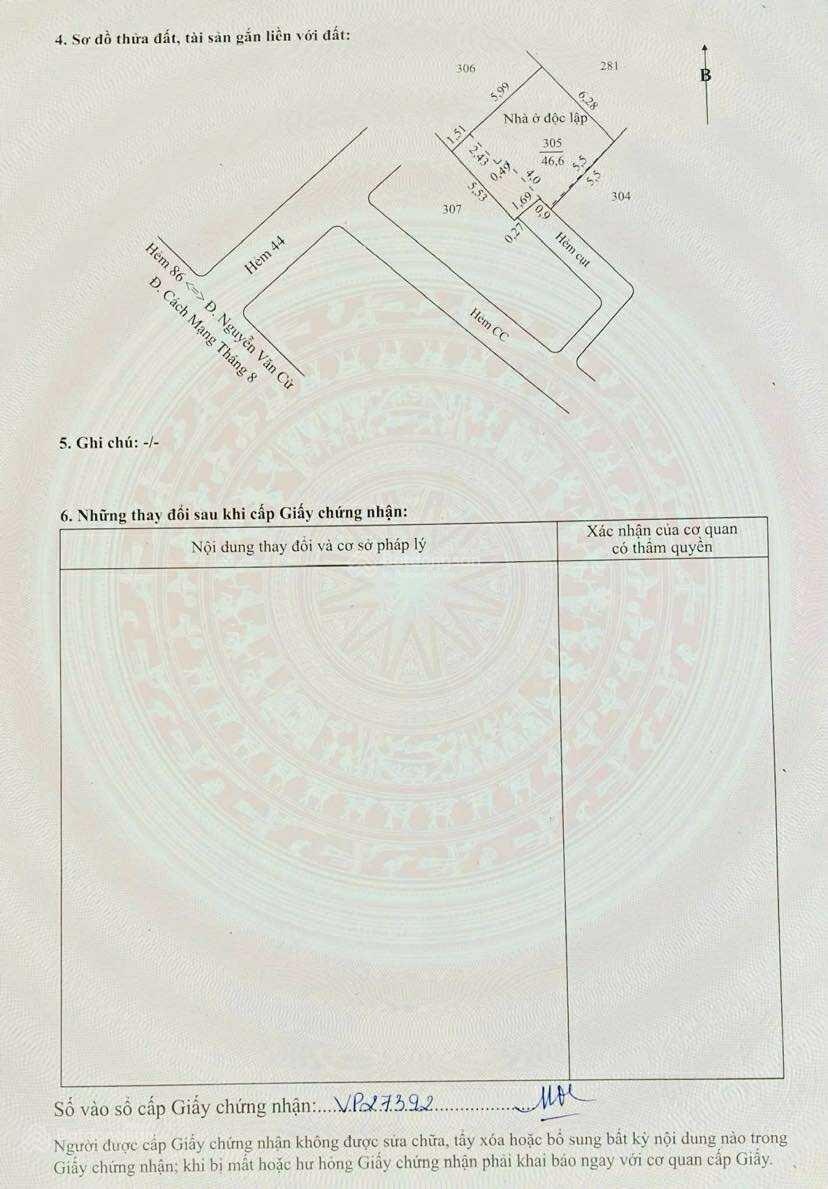 - Hẻm 44 đường CMT8, Cái Khế, Ninh Kiều. - Đối diện cao đẳng KTKT Cần Thơ. - Gần Vincom Hùng Vương. - Mới xây 100 %. - Lộ 1,7 m 2 m. - Trệt, cấp 4. DT = 46,6 m2 = 7,2 x 6,28. - Sân, PK, 2 p ngủ, bếp, wc. - Tặng full nội thất. - Thổ cư, hoàn công. - Tây Nam. - 1 tỷ 750 triệu. Thương lượng ít0907333390Gọi từ 7h sáng Trước 10h tối). - Xem nhà vui lòng cho hay trước 45 Phút.