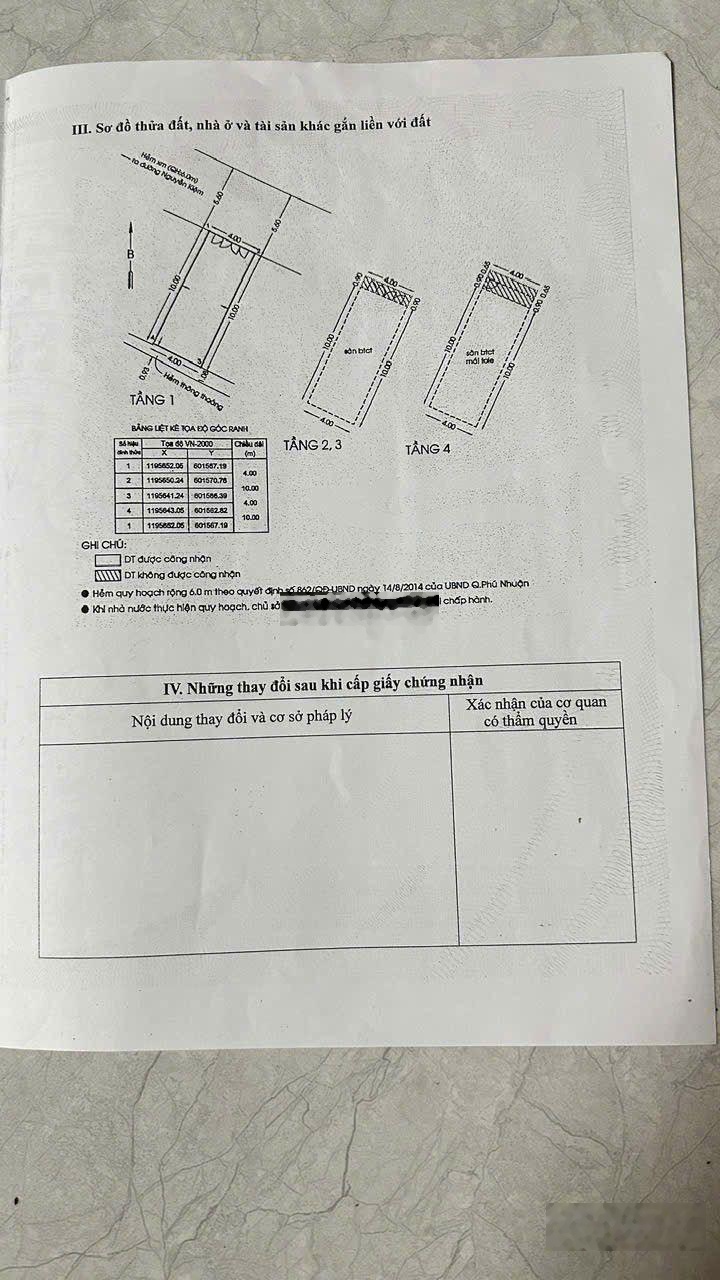 Vị trí : Nguyễn Kiệm , P4 , Phú Nhuận Diện tích : 4m x 10m CN đủ 40m2 DTSD : hoàn công đủ 160m2 sàn , tổng 4 tầng . Pháp Lý Chuẩn , sang tên cc ngay