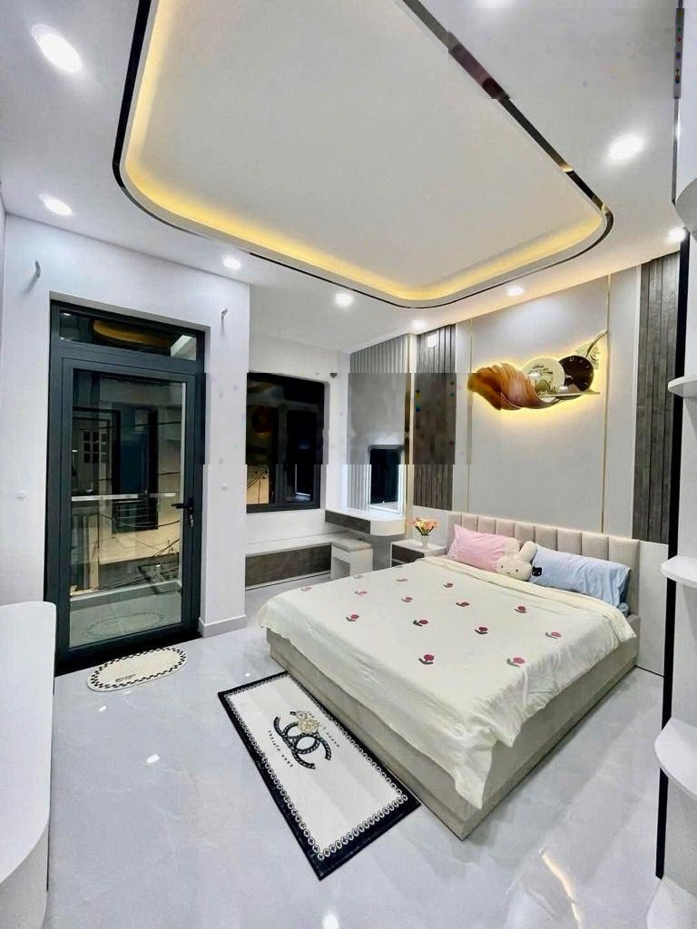 +Diện tích: 4m x 16m +Kết cấu: 1 trệt, 3 lầu, sân thượng trước sau 5 phòng ngủ, 5 toilet  +Có giếng trời thoáng mát, 2 sân thượng rộng rãi +Phòng giăt riêng biệt +Nội thất:  Nhà mới đẹp, trang bị nội thất cao cấp đầy đủ Chỉ việc xách vali vào ở ngay +SHR, Hoàn Công Đủ