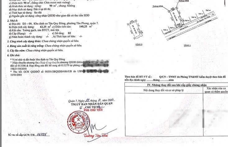Nhà đường số khu dân cư Tân Quy Đông, P. Tân Phong kế LotteMart, Quận 7. DT: 6m x 15m, hiện trạng: Trệt lầu. Đang cho thuê: 20triệu/tháng. Giá bán: 12.6tỷ. Lh: 0906969633 Khang.