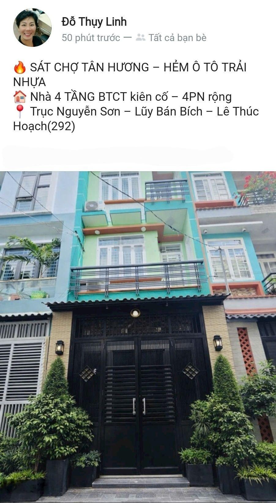Sát chợ Tân Hương hẻm ô tô trải nhựa, nhà đẹp 4 tầng bê tông cốt thép, 4 phòng ngủ Liên hệ xem ngay: OCHÍNOHAI 1O6 CHÍN11
